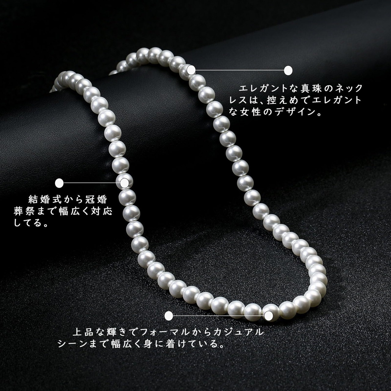 【様々な選択】8mm真珠ネックレスは、直径:6mm/8mm、長さ:40/45/50/55/60cm、色:ブラック/ホワイトから選べます。男女兼用で、さまざまなネック周りにフィットし、多様なファッションコーディネートの要求を満たします。