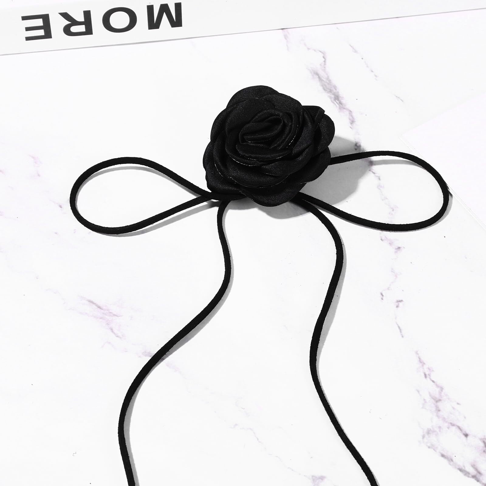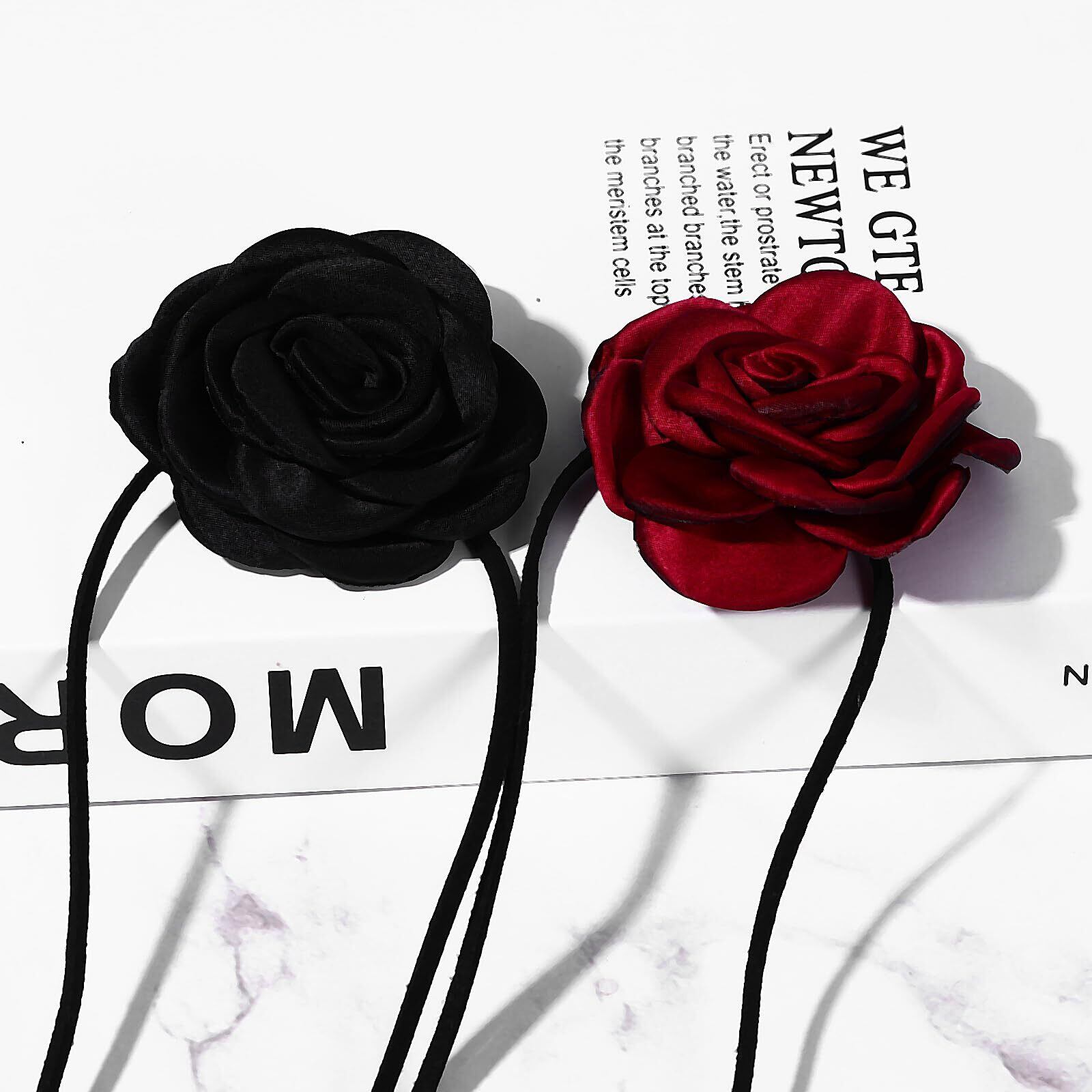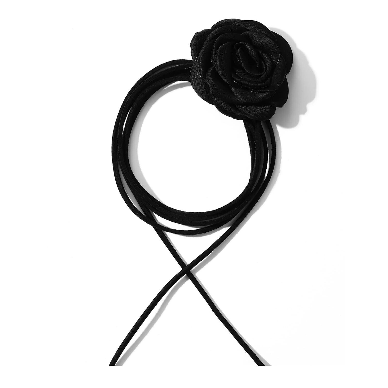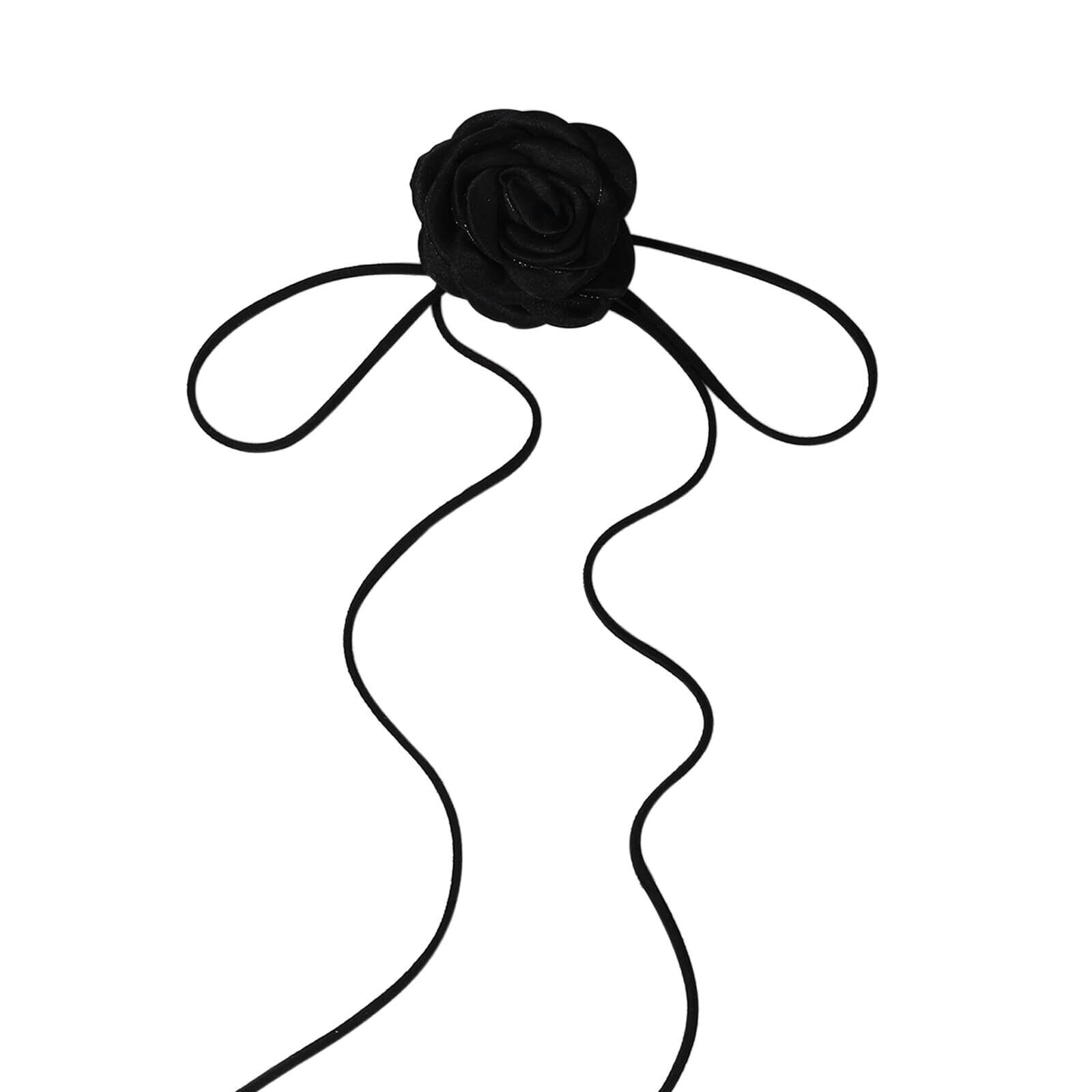 [Flongo] 人間 チョーカー レディース 首輪 ネックレス 首腕兼用 アクセサリー 可愛いsm 黒 赤 ツバキ(花) カメリア 布ロープ レース ゴスロリ ハロウィン コスプレ ロリータ パーティー 披露宴 二次会 おしゃれ プレゼント