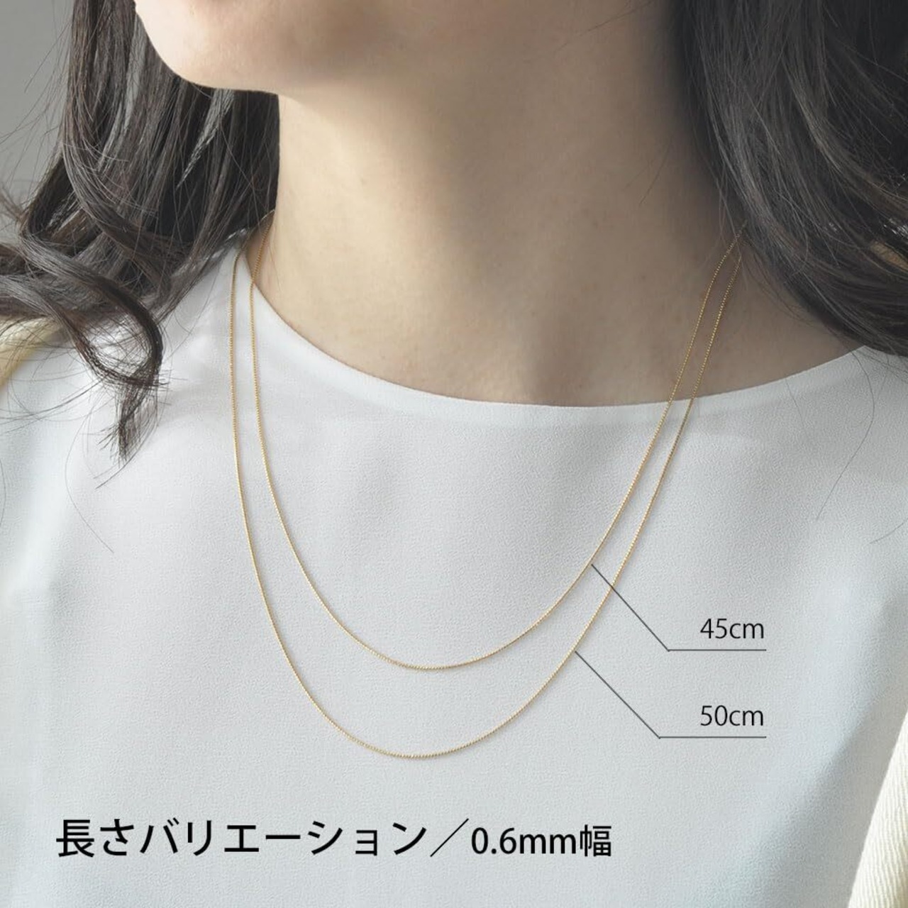 [エクセディア] Exedia レディース 18金(K18)16面カットベネチアンチェーンネックレス ボックスチェーン 最長50cm長さ調整可能 フリーアジャスター付 GNSBX E50