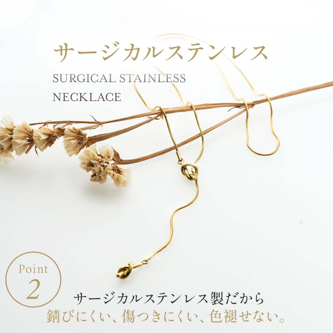 【数量限定】[Napist] ネックレス レディース ロングネックレス サージカルステンレス アクセサリー Y字 ラリエット スネークチェーン 長さ調整 可能 金属アレルギー対応 チェーン 65cm 結び目 NPNS102
