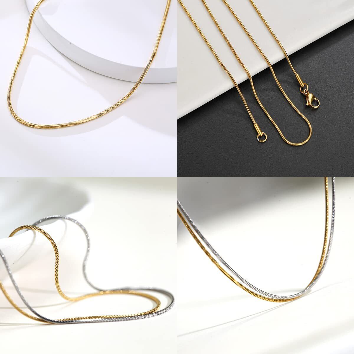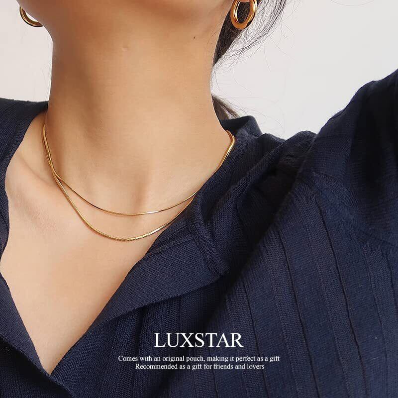 【新着商品】[LUXSTAR] ネックレス スネークチェーン 細め 2mm メンズ レディース 金属アレルギー対応 18K コーティング サージカルステンレス