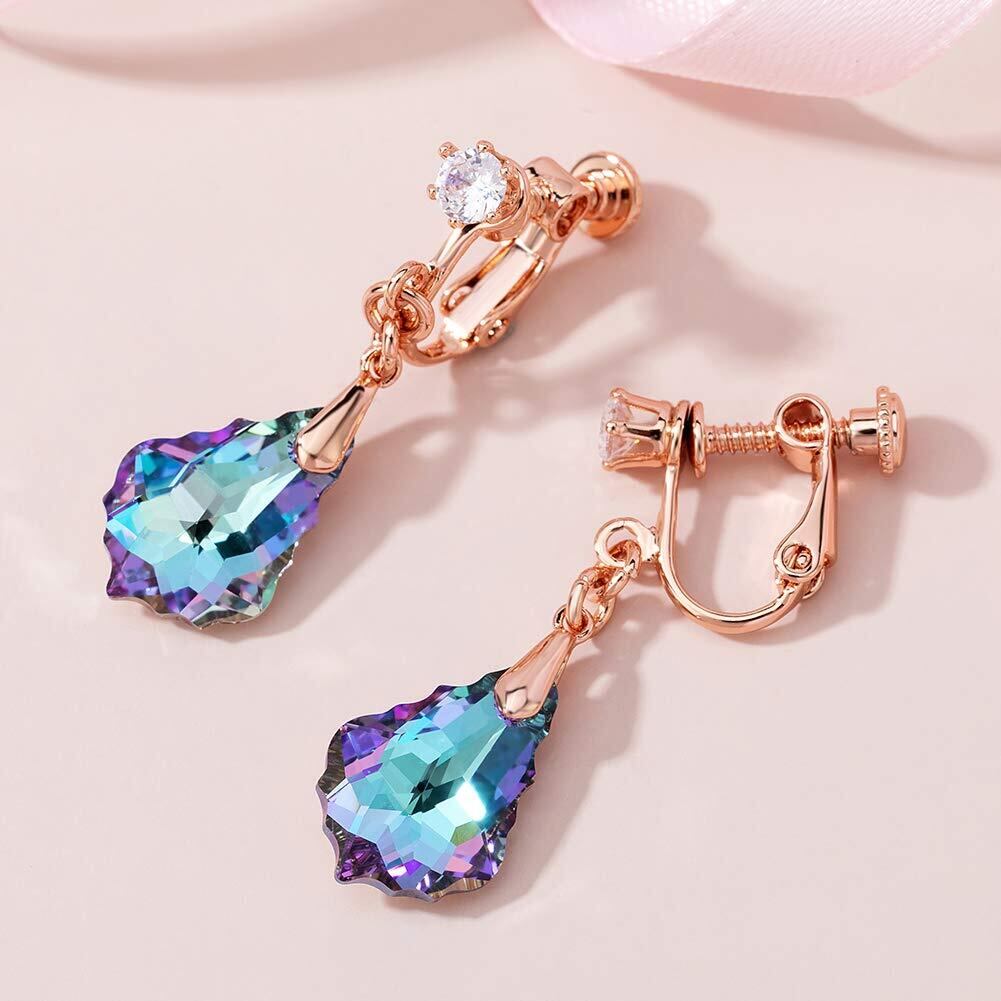 CHLOEOS イヤリング レディース 人気 ノンホールピアス 水滴 華奢 オーストリア クリスタル k18金 大人 可愛い 揺れる 金属アレルギー対応 ノンアレルギー 誕生日記念日 へバレンタインのプレゼント (パープル A)