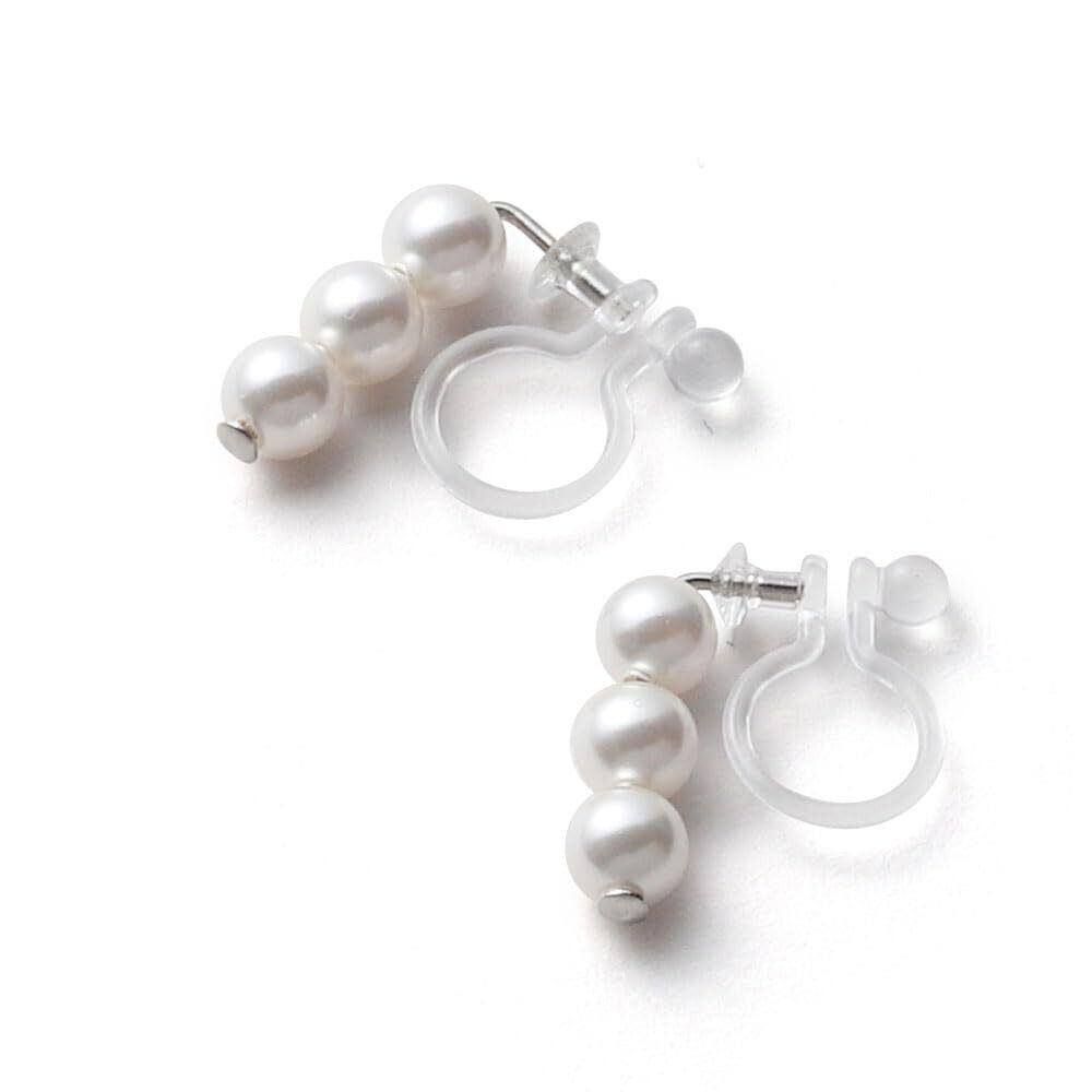 【女性らしさと品を高めてくれる真珠の輝き】 一つあると色んなシーンに活躍する3連パールの樹脂イヤリング。本真珠のように輝くプレミアムなクリスタルパールです。