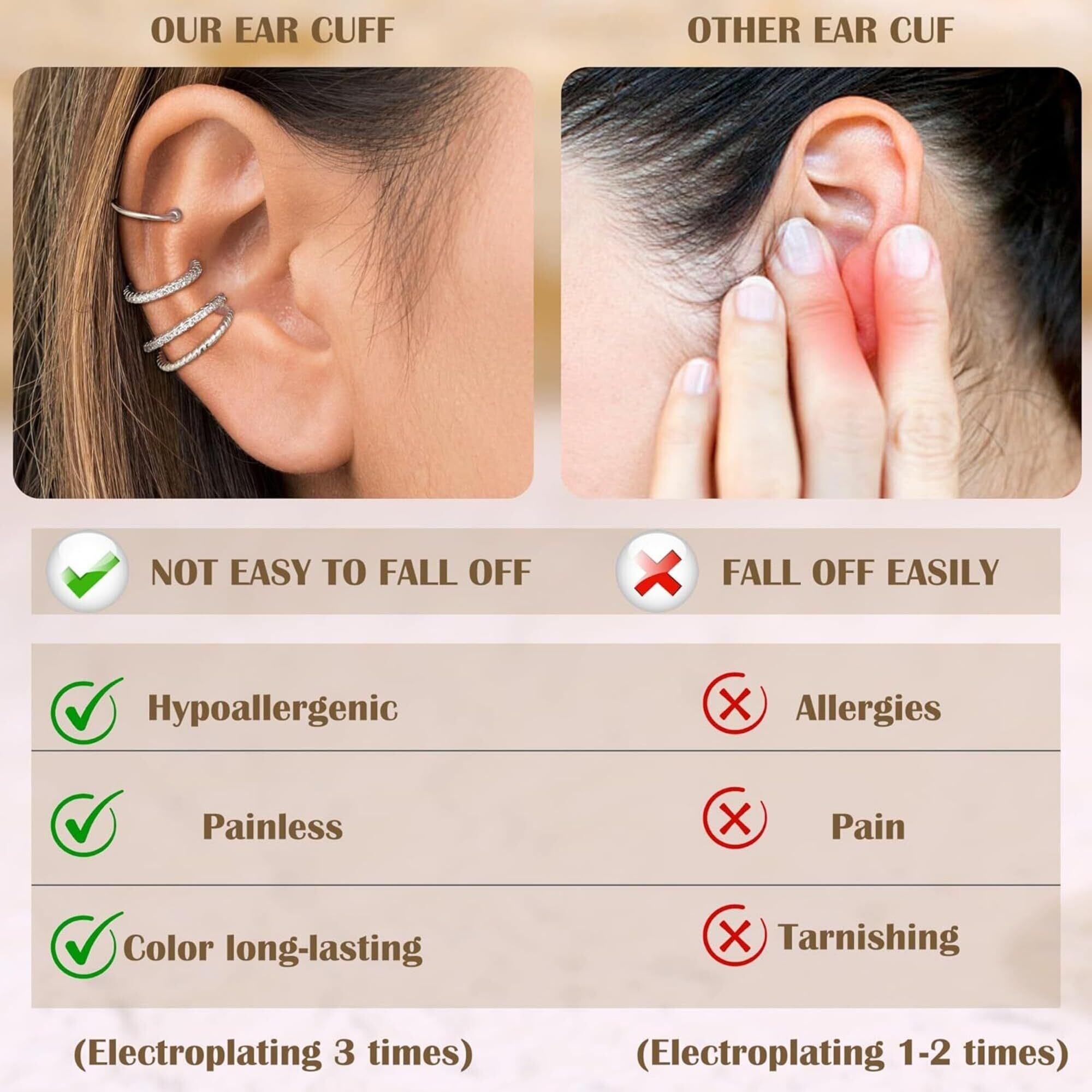 イヤーカフノーピアス:軟骨イヤリングの美しさを感じるために痛みを引き起こしません。 調整可能なデザインにより、耳にフィットするようにイヤーカフの締め付け感を調整でき、パーソナライズされた快適さをもたらします。