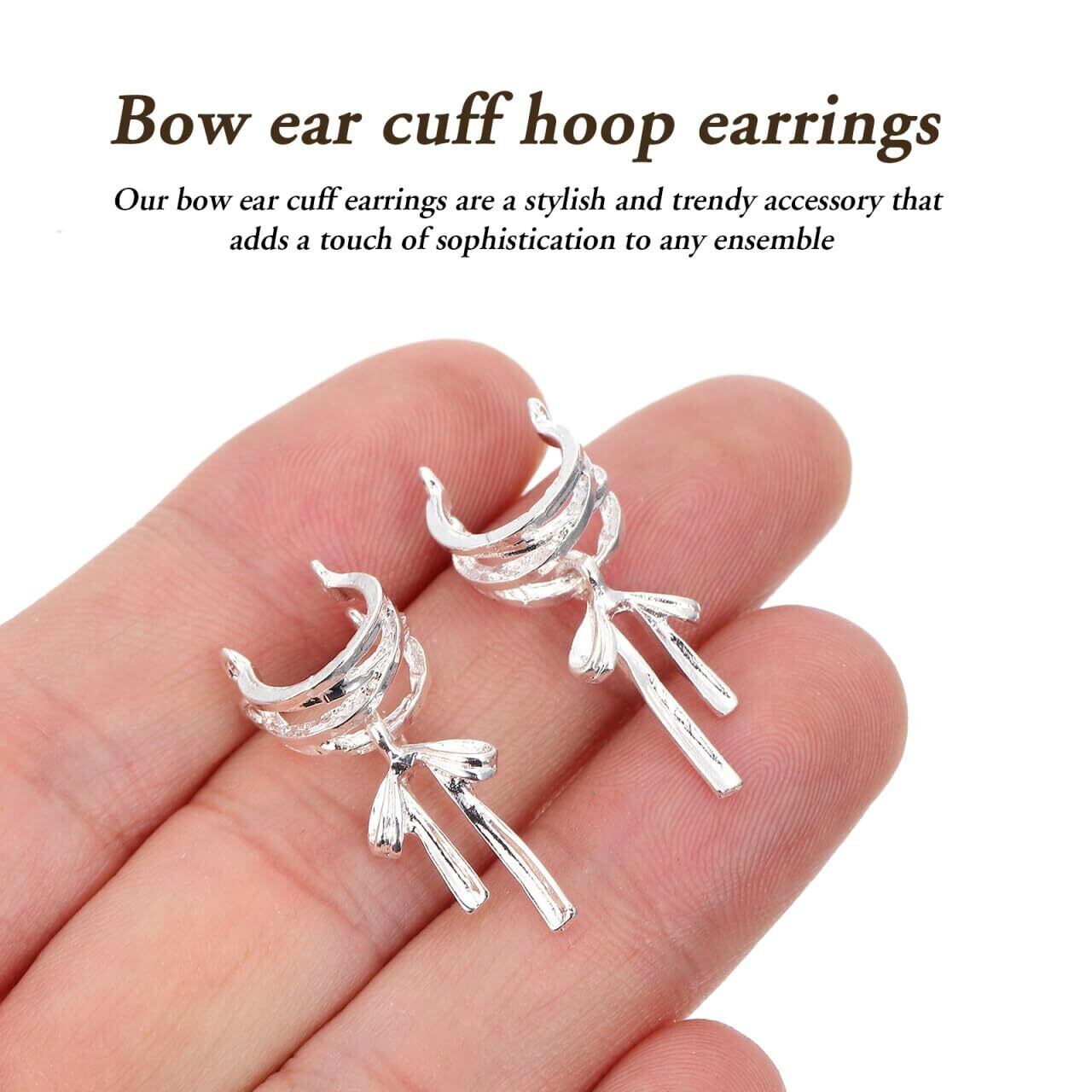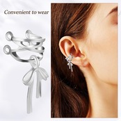 【可愛さ倍増!耳元に蝶々結び】合金製の蝶々結びイヤークリップ 1 ペア! 耳骨に軽く挟むだけで “可愛いアクセント”。日常のコーデからパーティーまで、“小さな華やかさ” を演出する小物に。