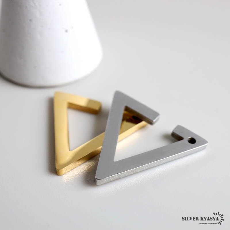 三角形のシンプルなイヤーカフ。メタルな質感とエッジの鋭いシャープな見た目が洗練された印象を与えます。ファッションのアクセントに最適なアイテムです。