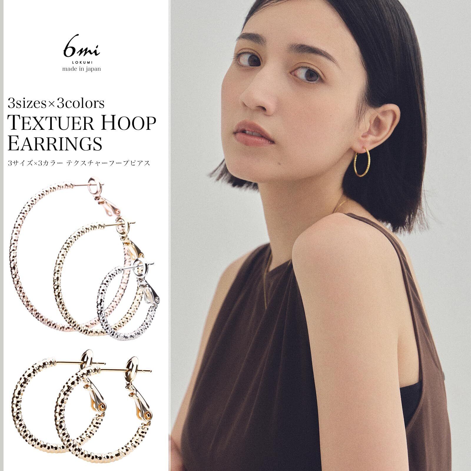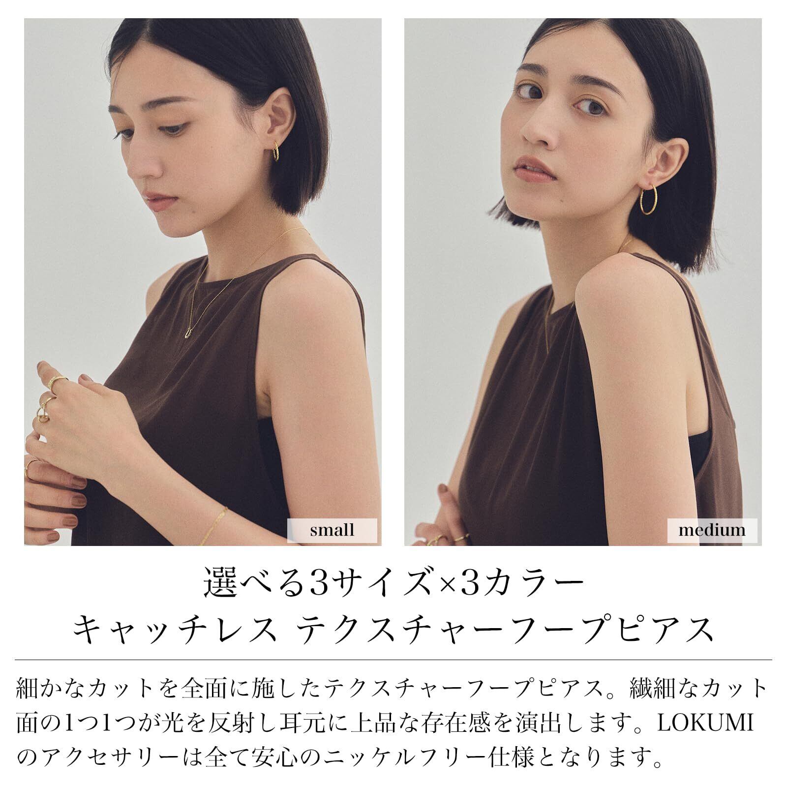 LOKUMI ピアス 選べる3サイズ×3カラー 日本製 フープ フープピアス 金属アレルギー対応 ワンタッチ キャッチレス 大振り 小振り 大きめ 小さめ レディース シンプル わっか 人気 揺れる ニッケルフリー ギフト プレゼント hp-1