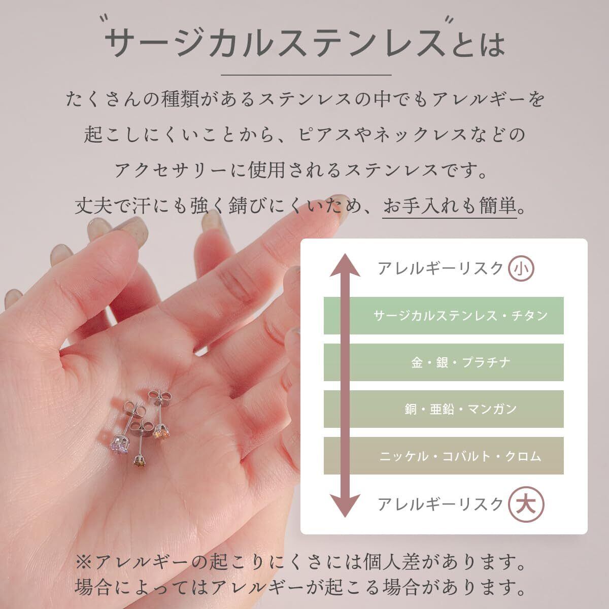 【サージカルステンレスを採用】 サージカルステンレスは金属アレルギーを起こしにくいと言われており、腐食や変色・傷にも強く、お手入れ簡単です。