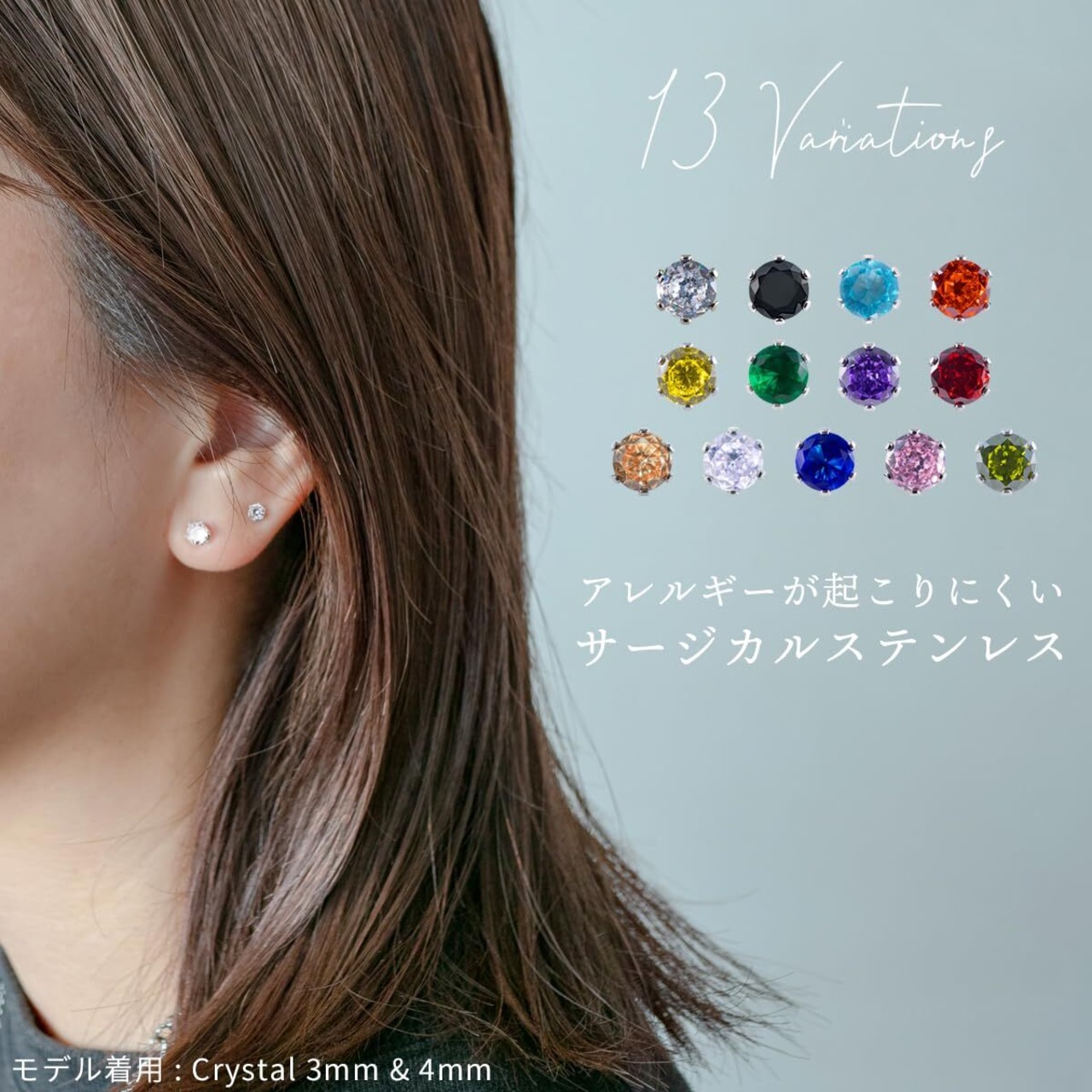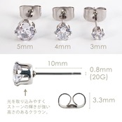 【サイズ】 ストーン幅 3mm / 4mm / 5mm ・ ポスト幅 0.8mm ・ ポスト長さ 10mm 【素材】 サージカルステンレス