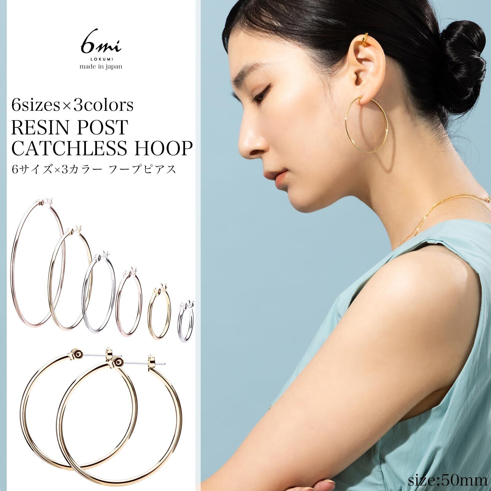LOKUMI ピアス 選べる6サイズ×3カラー 日本製 フープ 樹脂ポスト フープピアス 金属アレルギー対応 ワンタッチ キャッチレス 大ぶり 小ぶり 大きめ 小さめ レディース シンプル わっか 人気 揺れる ニッケルフリー ギフト プレゼント jc-1-6