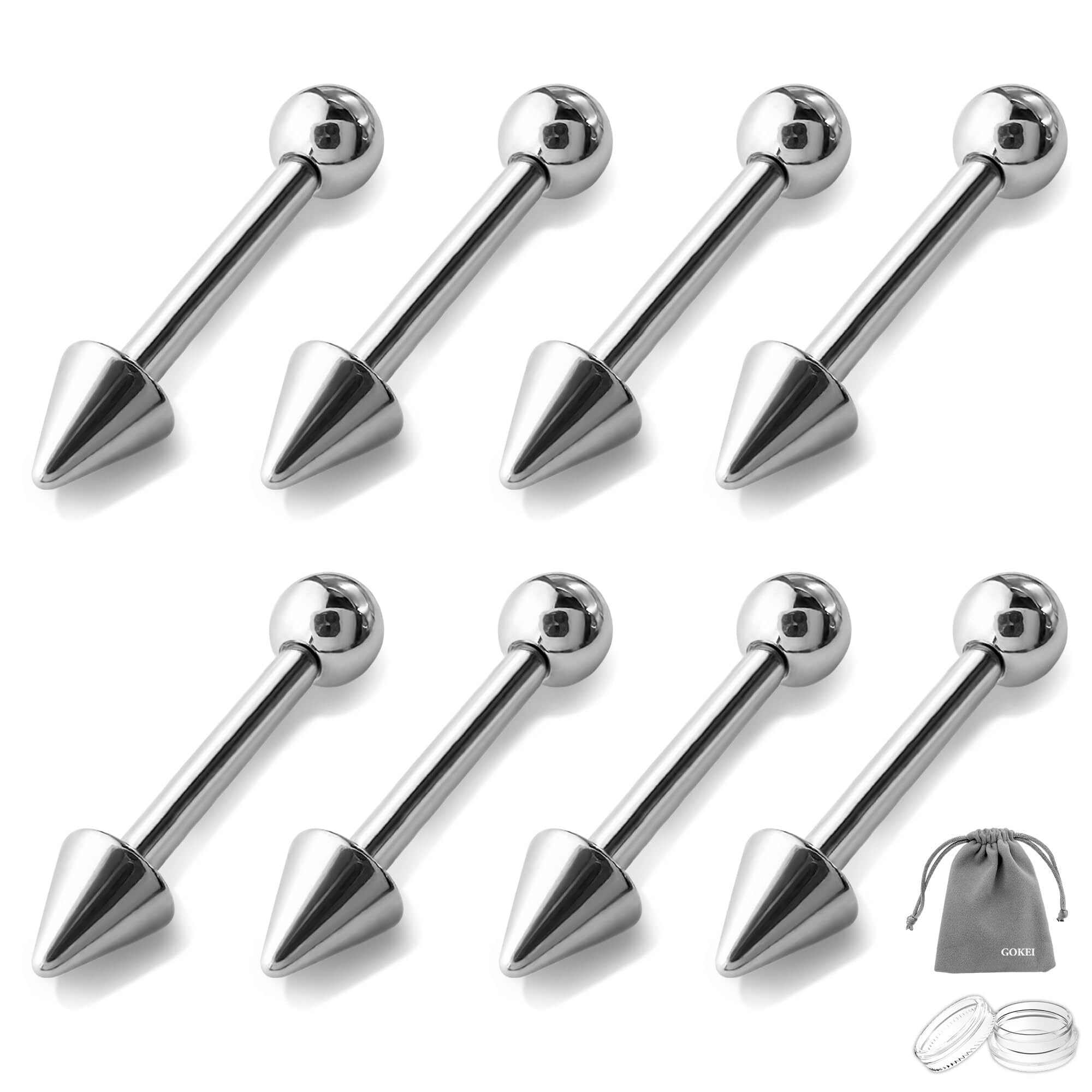 [GOKEI] コーン&ボール ストレートバーベル ボディピアス 軟骨ピアス 18G 16G 14G ゲージ 8本セット ピアス サージカル ステンレス 耳 トラガス ヘリックス つけっぱなし メンズ レディース 金属アレルギー 対応 シルバー