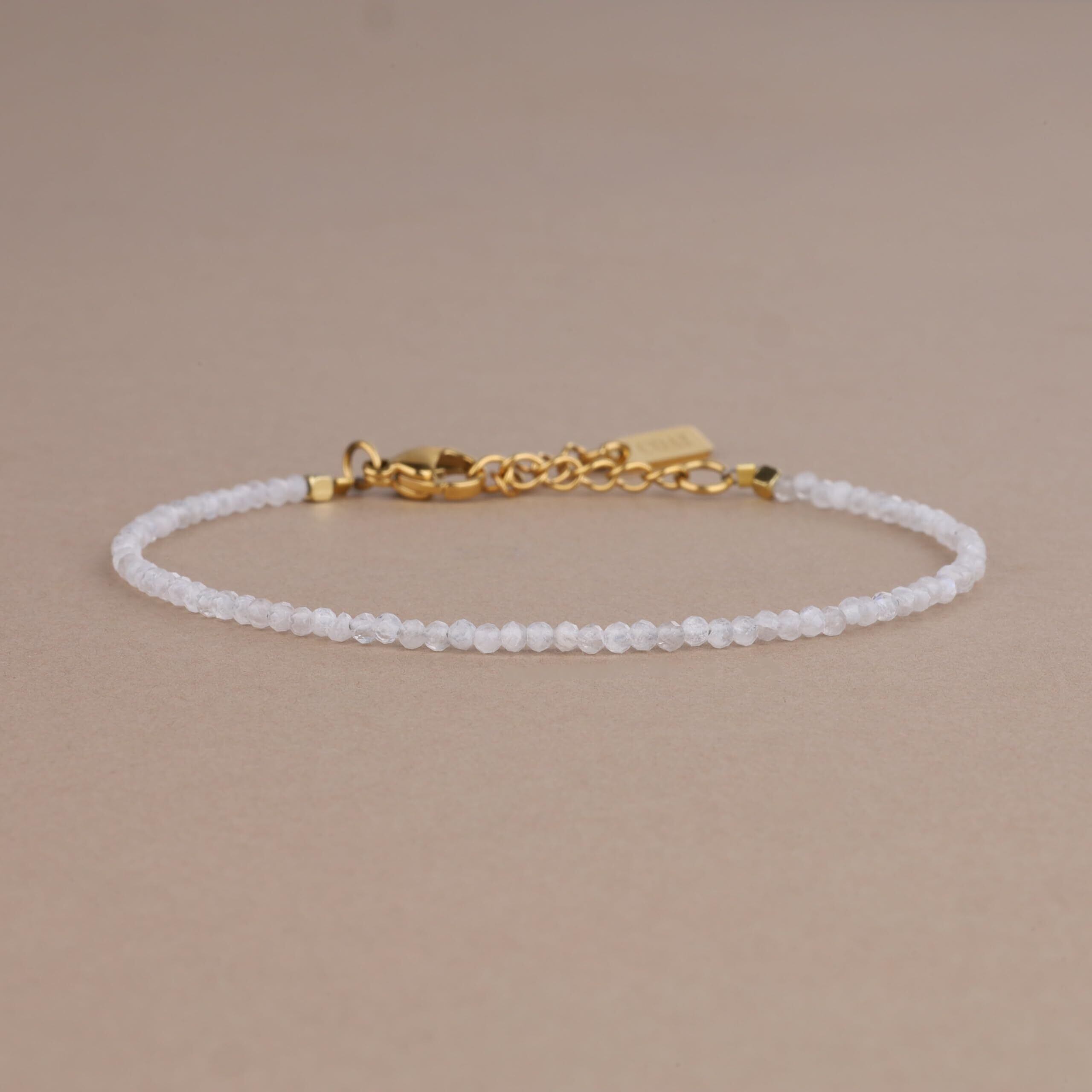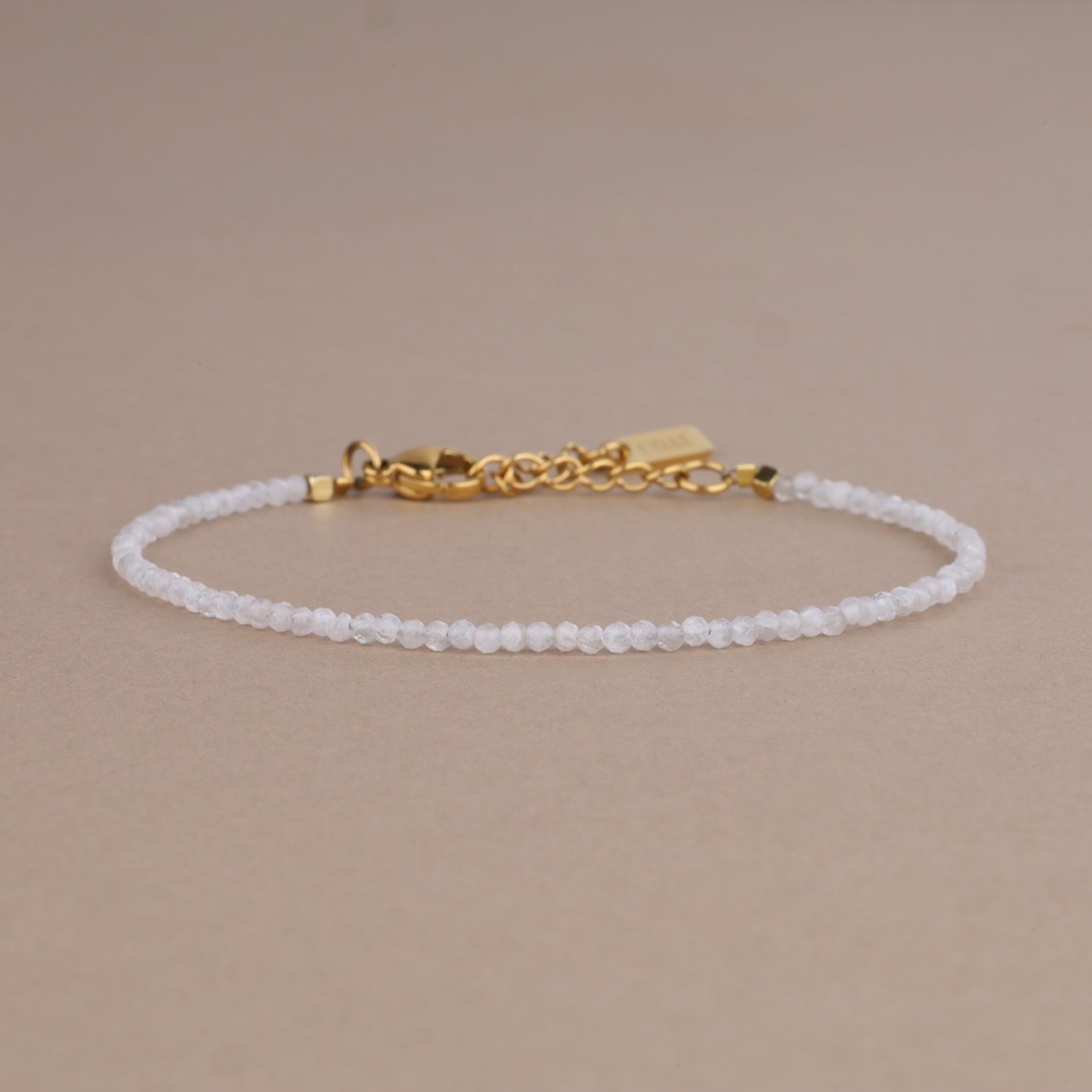 パワーストーンの選択: このパワーストーンブレスレットは、2mmのムーンストーン天然石ビーズを使用しています。ムーンストーンは6月の誕生石で、柔らかい光沢が特徴です
