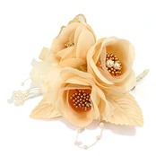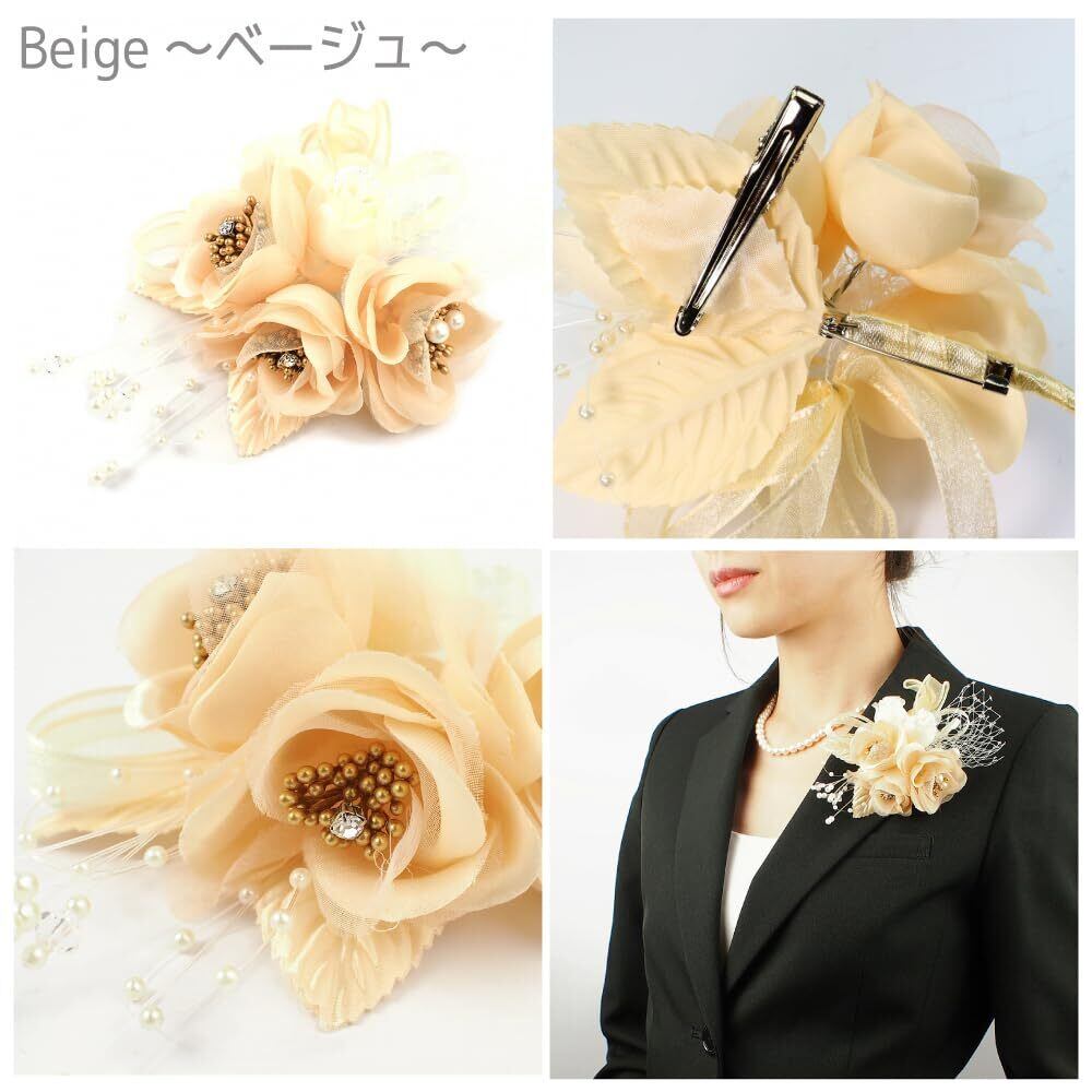 [クレインズコレクション] 手作り 三つ花ローズ コサージュ ブローチ ピン クリップ付 フォーマル シーンや エレガント な装いに ベージュ
