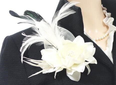 【特価商品】bath&bath 特別な日に胸元を彩る コサージュ 羽根付き 2way 結婚式 入学式 卒業式 (ホワイト)
