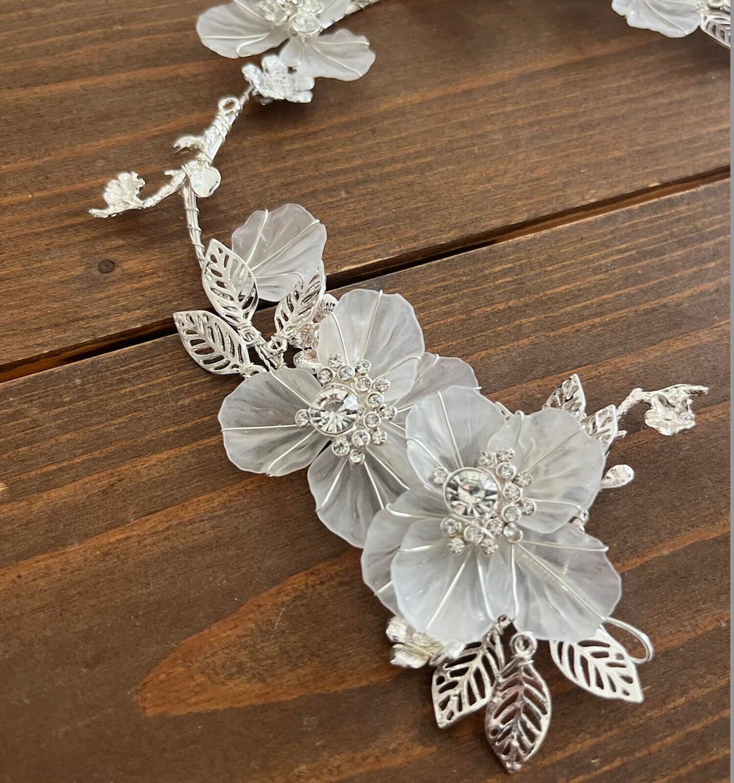 【J's select】リーフ フラワー 花 ビジュー レディース ヘアアクセサリー 髪飾り ヘッド ドレス 結婚式 パーティに (シルバー)