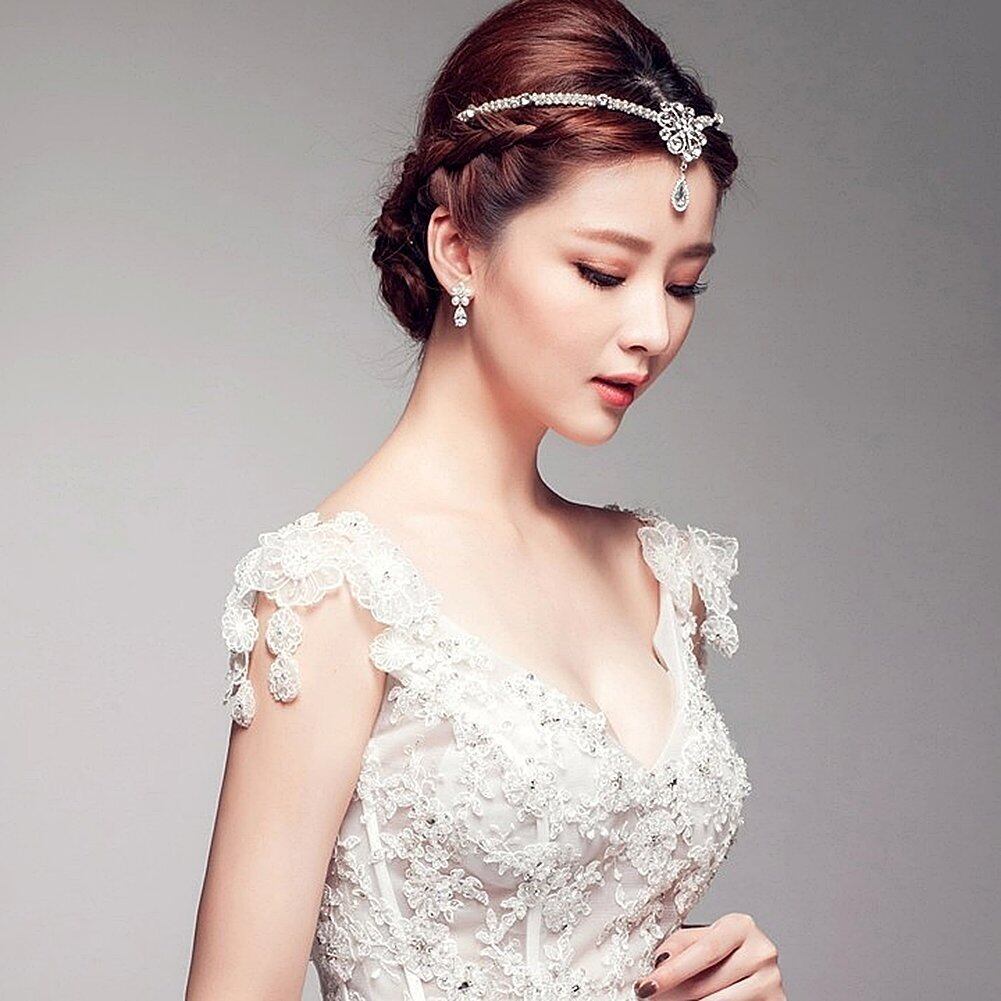 DRASAWEE(JP) ブライダル 額チェーン ペンダント ラインストーン 韓版 ティアラ 結婚式 花嫁のヘアバンド