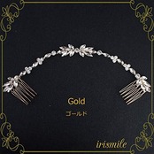 素材構成: ゴールド調の金属製コームとクリスタル調ラインストーンを使用し、上品な輝きを放つ