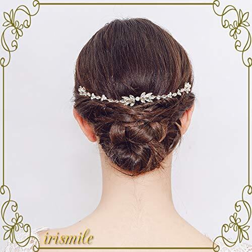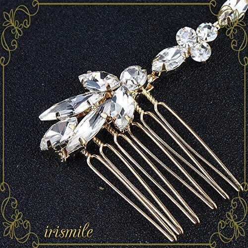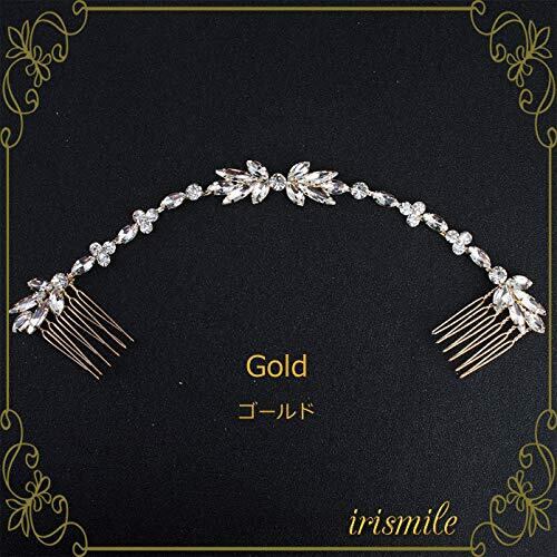 【irismile】ヘッドドレス ウェディング カチューシャ ブライダル ティアラ ヘアバンド ヘアアクセサリー 髪飾り 結婚式 (F.ゴールドラインストーン)