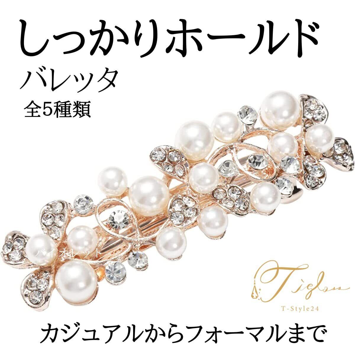 【新着商品】(ティグロス) TIGLOSS バレッタ パール ヘアアクセサリー 髪飾り 髪留め 結婚式 ヘアピン ヘアクリップ (リーフ)