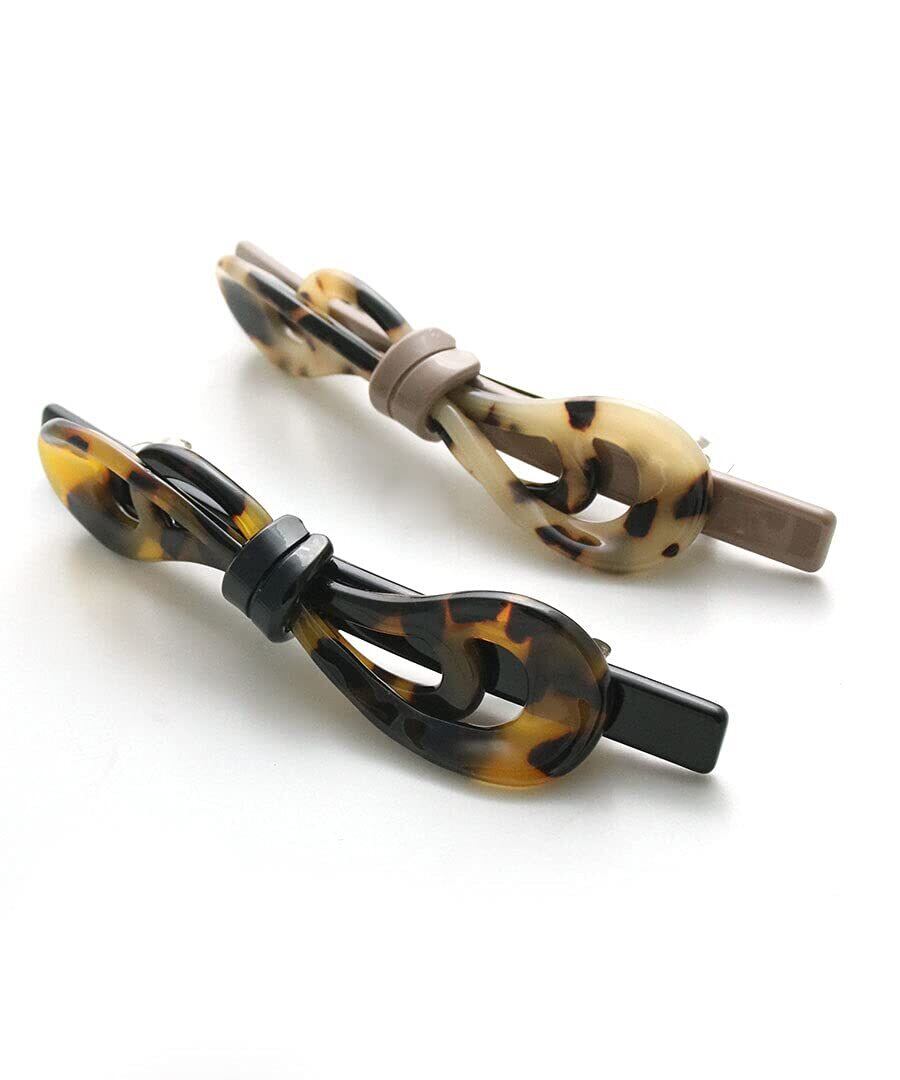べっ甲風の柄とクラシカルな艶めきが上品なバレッタ。甘くなりがちなリボンモチーフもべっ甲柄なら大人っぽくまとまります。シーズンレスで使えるのも嬉しいポイント。シンプルなデザインなので、コーディネートに取り入れやすく、前髪を留めたり、ハーフアップのワンポイントなど、デイリー使いに活躍してくれそう。