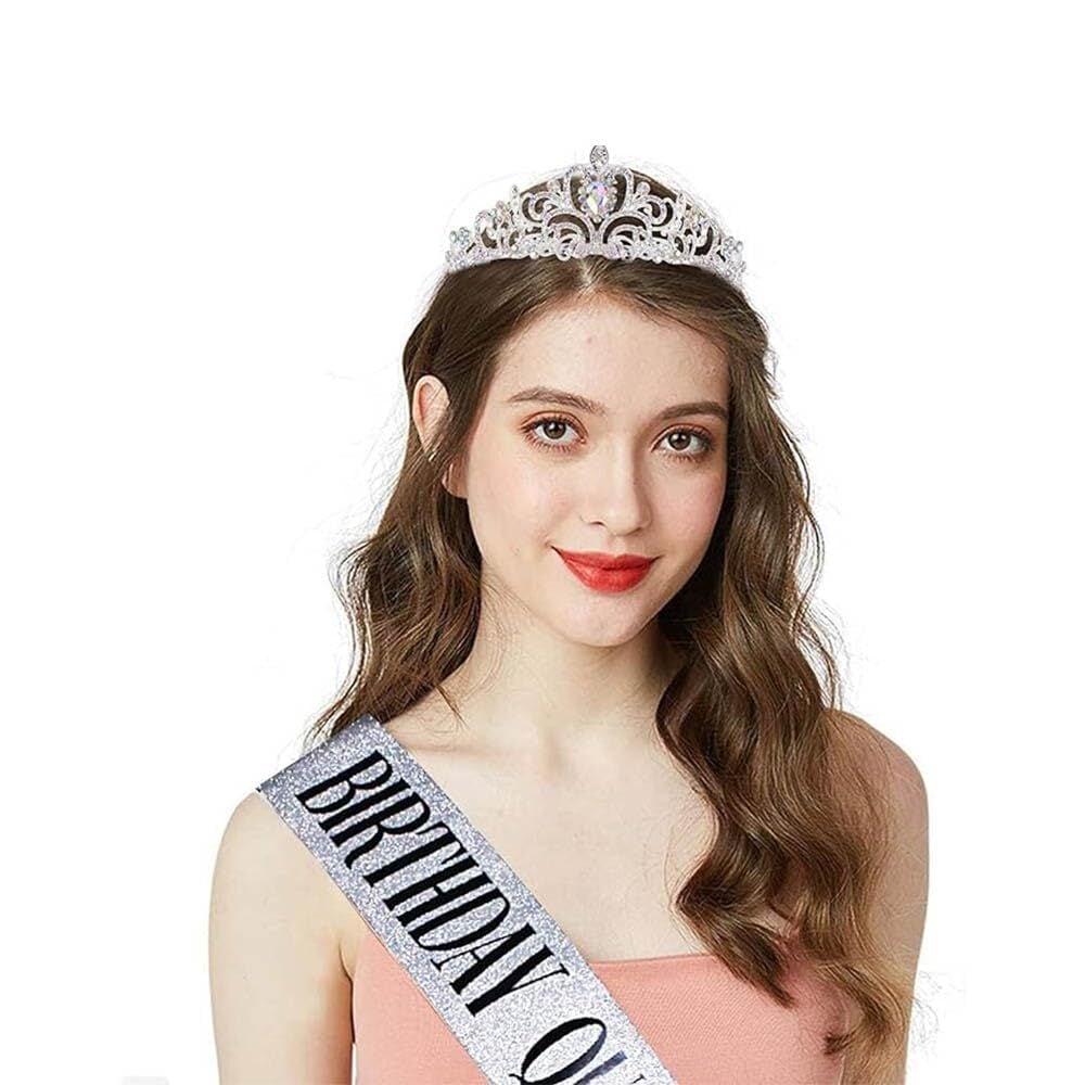 誕生日 王冠 たすきセット カチューシャ ラインストーン クラウン ティアラ 姫系 ヘアフープ 誕生日カチューシャ 記念写真 成人式 パーティー用品 ローズゴールド