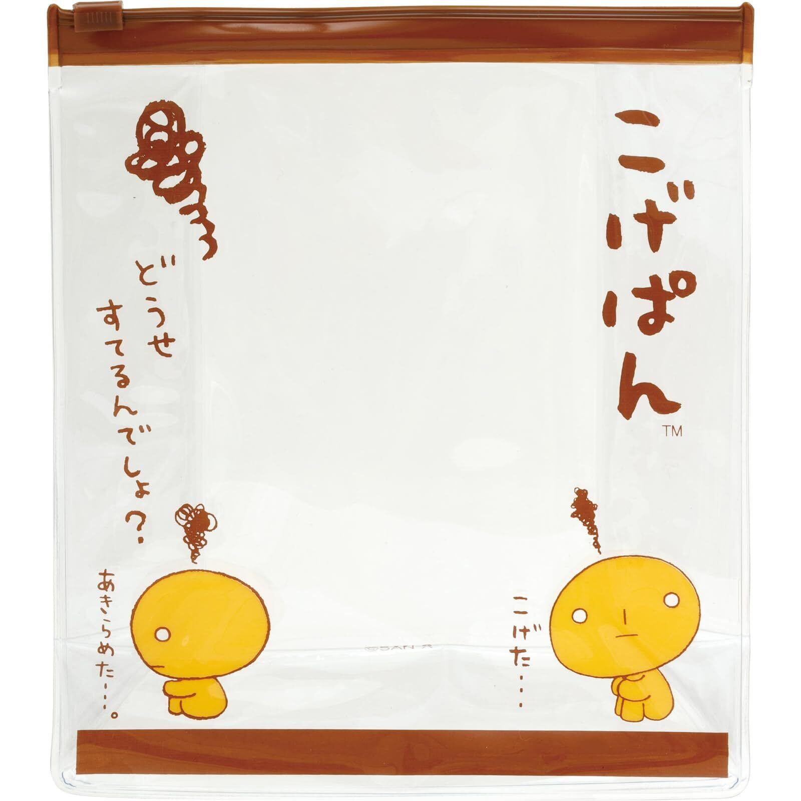 こげぱんのぬいぐるみが登場。パンの袋風のポーチとセットです。こげぱんは取り出して遊べるよ。