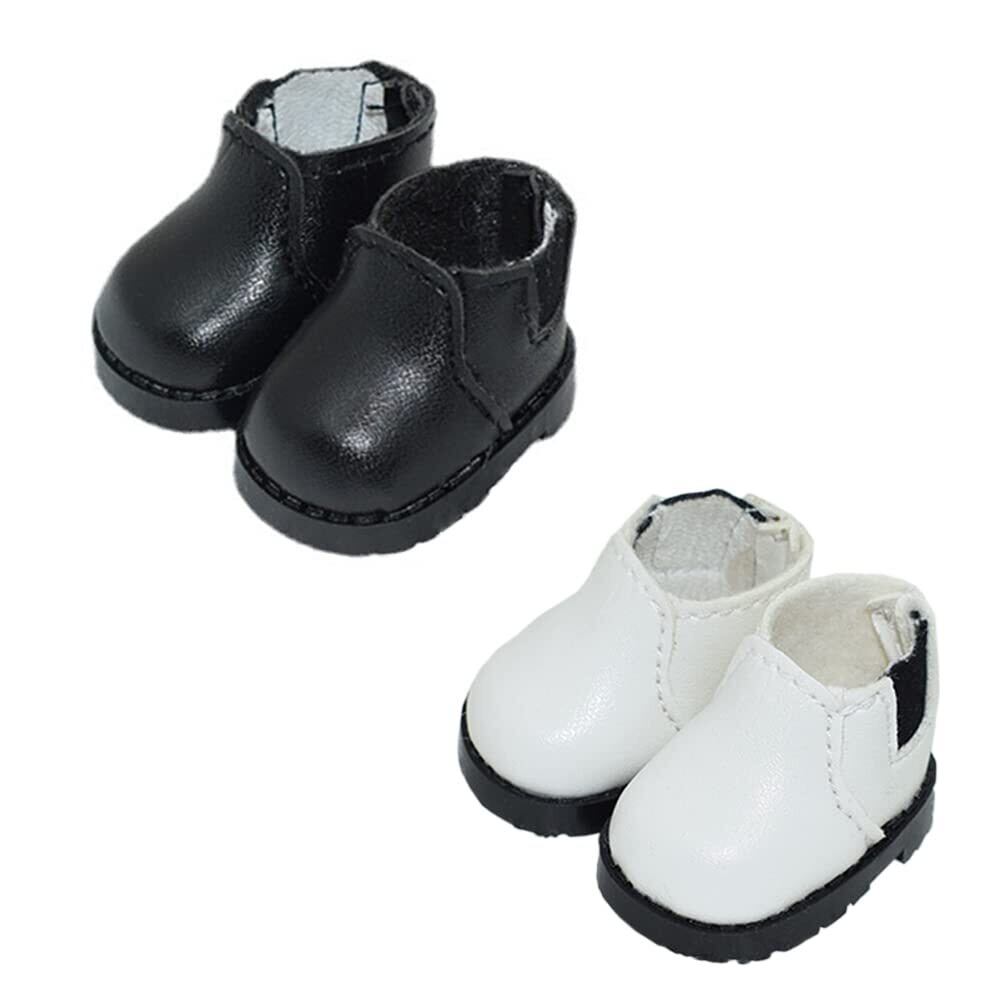 【特価商品】niannyyhouse 10cm ぬいぐるみ 革靴 綿人形のトールブーツ 靴の長さ約3.8cm 着せ替え (Black+White)