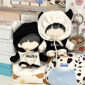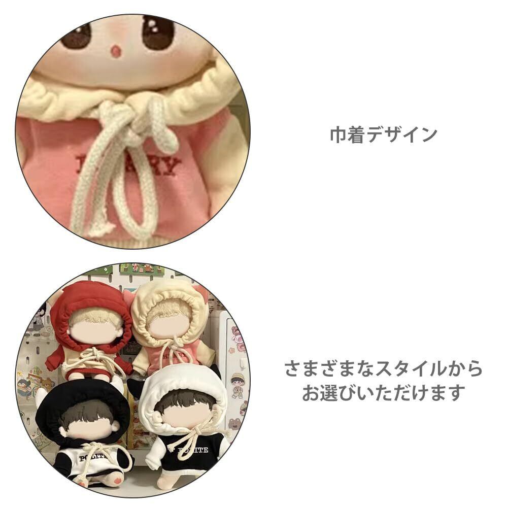 【仕様】可愛い10-15cm綿人形サイズのフード付きパーカー。カジュアルのパーカー様式、綿人形着替え用服。パーカーの帽子は立体角付きます。素材:綿。スタイル:ブラック帽子+ホワイト帽子。