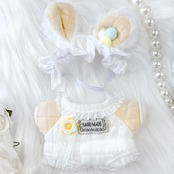 ふわふわの垂れ耳が付いたぬい服ヘッドドレスとベビー服の2点セットサイズ ベビー服:H6×W8cm ヘッドドレス:円周17cm(ゴム仕様・最大40cmまで伸縮可)