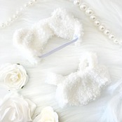 もこもこ素材ぬい服ヘッドバンドはゴム仕様なので様々なサイズのぬいぐるみに対応しております。全長10~15cm程度のぬいぐるみに着せることができます。サイズ・ヘッドバンド:W10cm×H4cm・サロペット:W8cm×H6cm