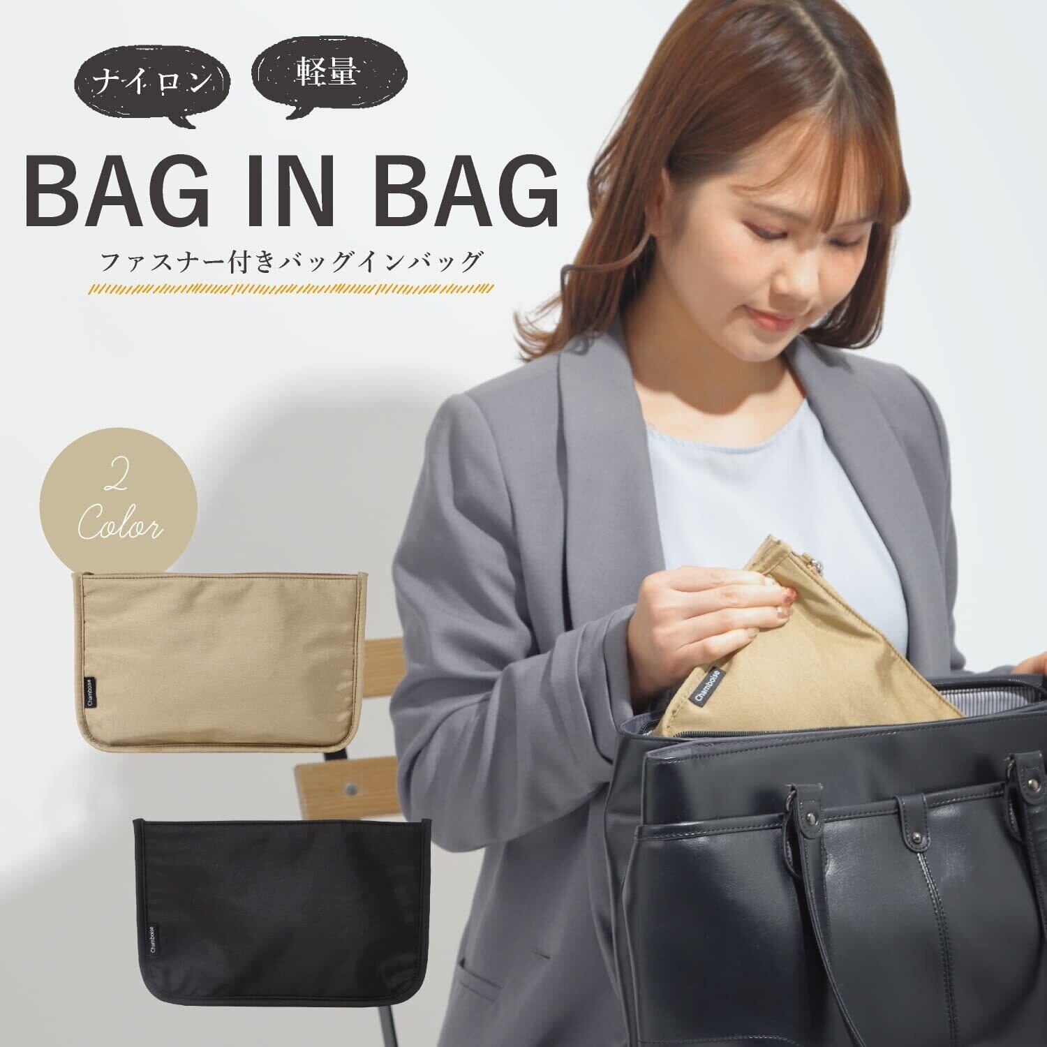 【持ち手つき】バッグインバッグには持ち手がついており、バッグから別のバッグへ楽に移動させることができます。持ち手を必要としない時は、内側に入れこむことが可能です。