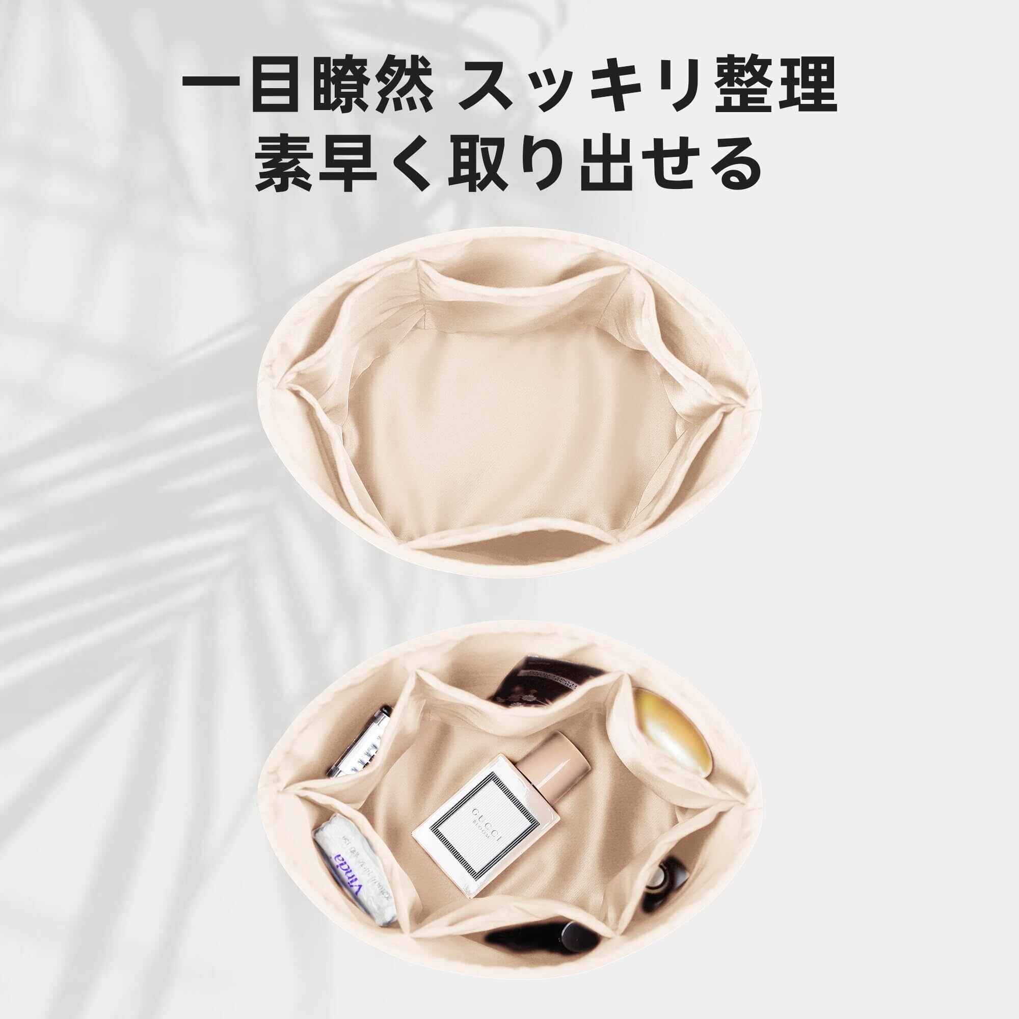 【高級バックにおすすめ】 お気に入りの素敵なバックの中身は、カギ、化粧品の割れや汚れから守れる。やわらかい生地で皮製品などに対して傷つきません。高級バッグでも安心に使えないバッグインナーバッグ。