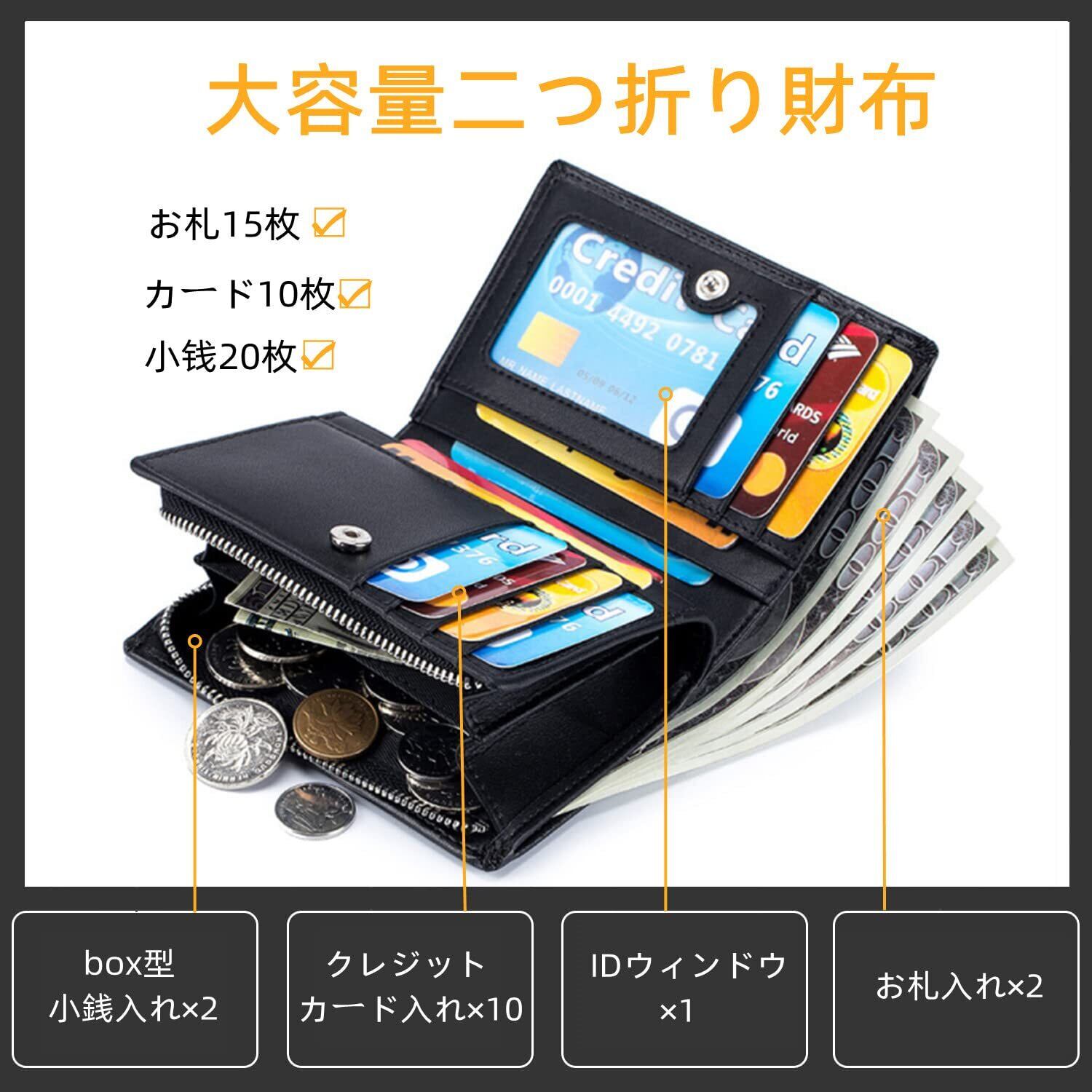 【圧倒的な収納力】驚きの収納力!カードや名刺、札、コインなどを収納できます。カジュアルから仕事まで幅広く使えます。外側にボック ス型小銭入れが設計されているので、紙幣やカード収納部分を開かなくても小銭が出し入れ出来ます。小さい財布が好きな方にもピッタリ の男 用の人気デザインです。
