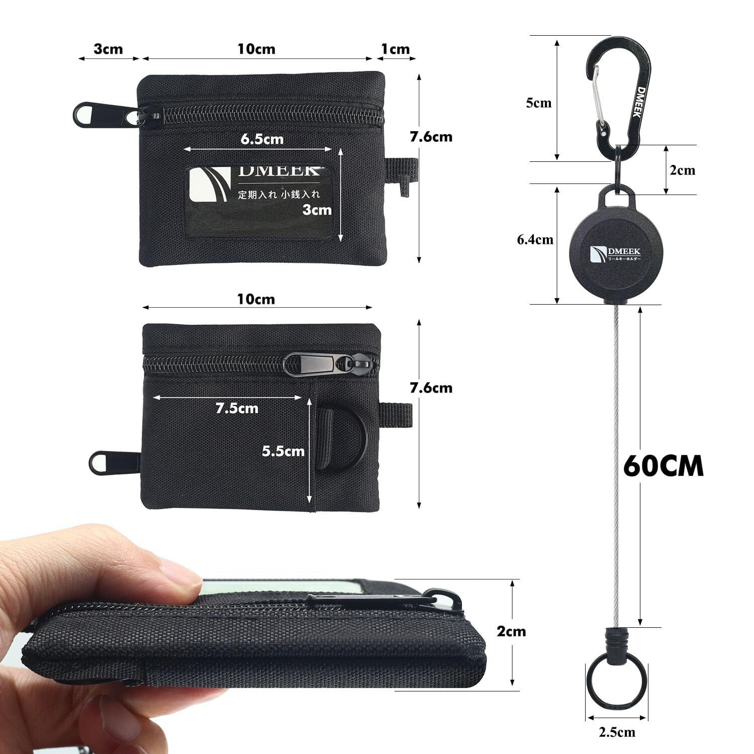 DMEEK 小銭入れ パスケース 財布付き カードケース 定期入れ 伸縮式キーホルダー付き アウトドア カラビナ ランドセル キーケース メンズ レディース 子供 中学生 コンパクト 小銭ケース コインケース カード入れ