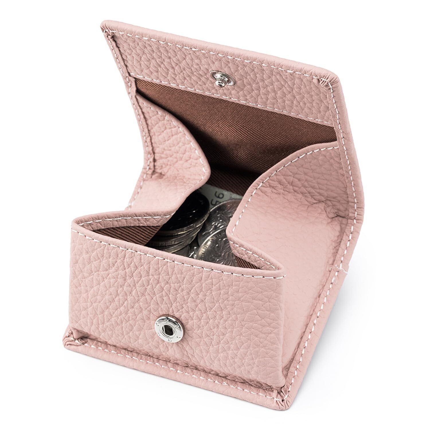 小銭入れ レディース 革 ボックス型 小銭入れ メンズ コインケース ミニ財布 コンパクトサイズ ボタン式 カード 使いやすい コンパクト 薄い こぜにいれ 超軽量 カードケース 通勤のお友に便利 (ピンク)