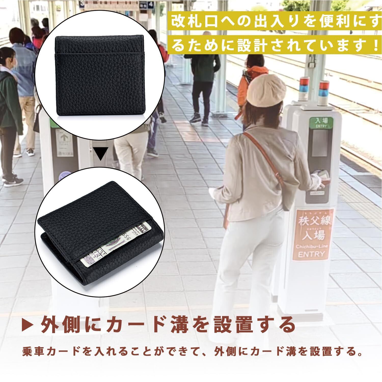【実用性】横7.5㎝ 縦8㎝ 手のひらにすっぽりと納まり、上着の内ポケット、胸ポケット、パンツの後ろのポケットなどにスッと納まります。通勤、通学途中に自動販売機で飲み物買ったり、電車の改札で定期入れとして使ったり、とても便利です、小銭がパッと見れ ガバッと開き 取り出しやすいので、支払いにもたつかずスマートで カッコイイ!また、外側にカード入れがあるため、通勤・通学時の駅への乗り入れもしやすく、颯爽とした生活が送れる。