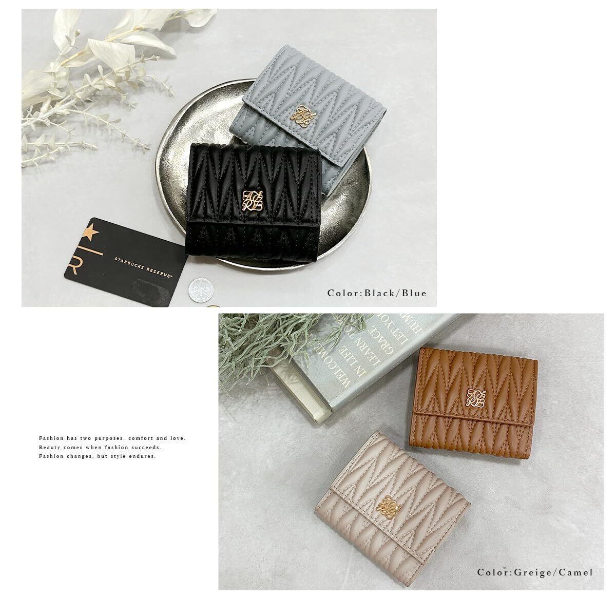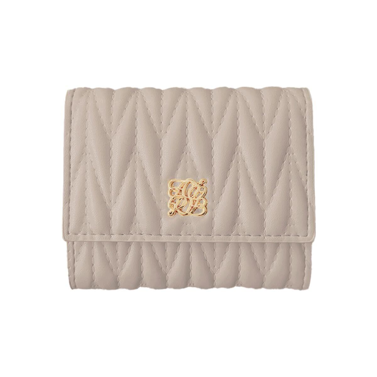 [ジゼル] 財布 三つ折り財布 ミニ財布 コンパクト 使いやすい L字型 BOX型 カードケース 小銭入れ 大容量 ロゴ入り レディース 折りたたみ ギフト プレゼント キルティング 小さい (グレージュ)
