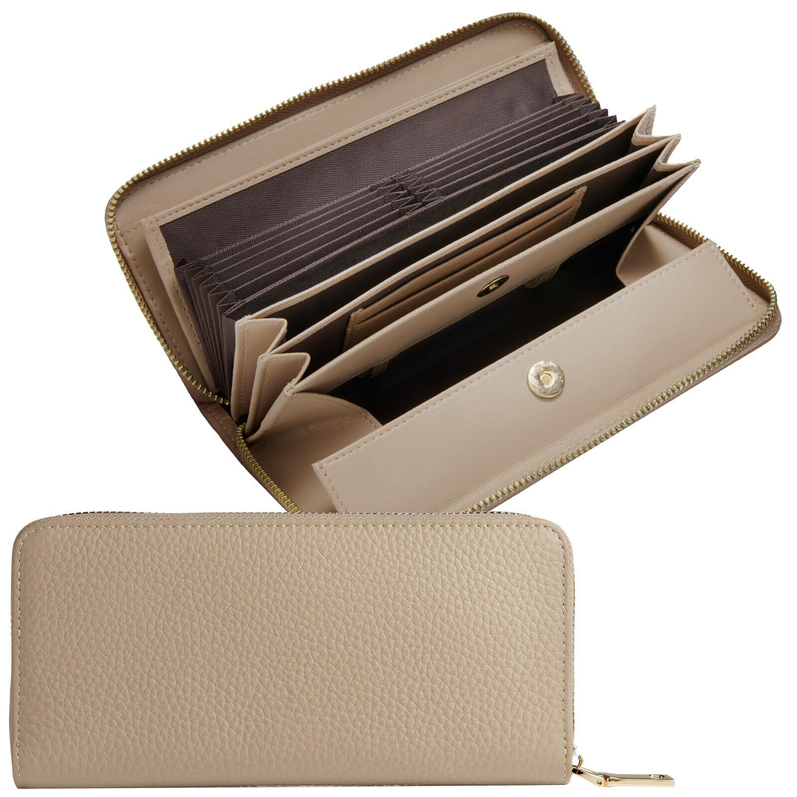[NEESE] 長財布 コインスルー レシートと小銭を自動で仕分け 本革 ボックス型コインケース 財布 レディース 多機能 ウォレット 金ファスナー 母の日 ギフト 大容量 (h.グレージュ)