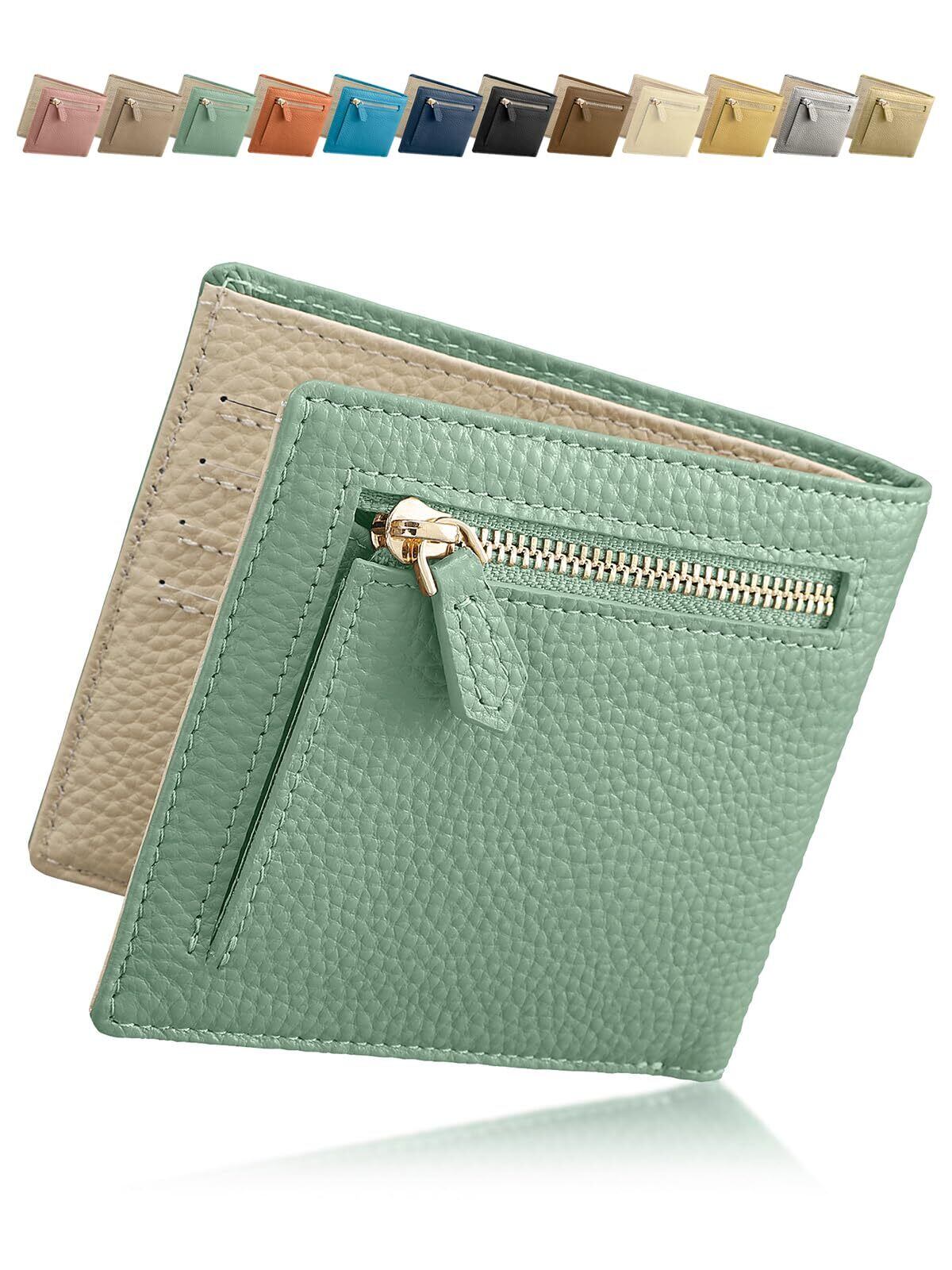 [アンコール] ミニ財布 【極薄7mm 美人百科に掲載商品】 財布 レディース コンパクト 本革 二つ折り 収納のプロ監修 薄型 薄い キャッシュレス スクエア コンパクト 軽い スリム ミニ ウォレット スキミング防止 (アイスグリーン)