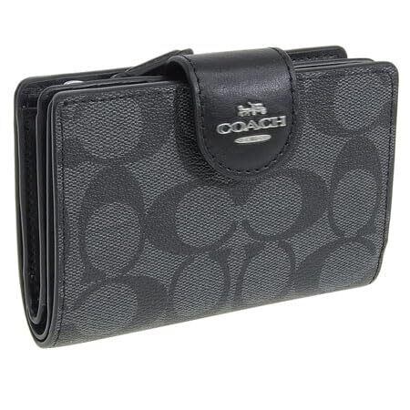 [OIGATSUO] レディース 二つ折り財布ラグジュアリー シグネチャー レザー ミディアム コーナー ジップ ウォレットア 通販 L型 財布ウトレット品 (ブラックスモーク×ブラック) [並行輸入品]