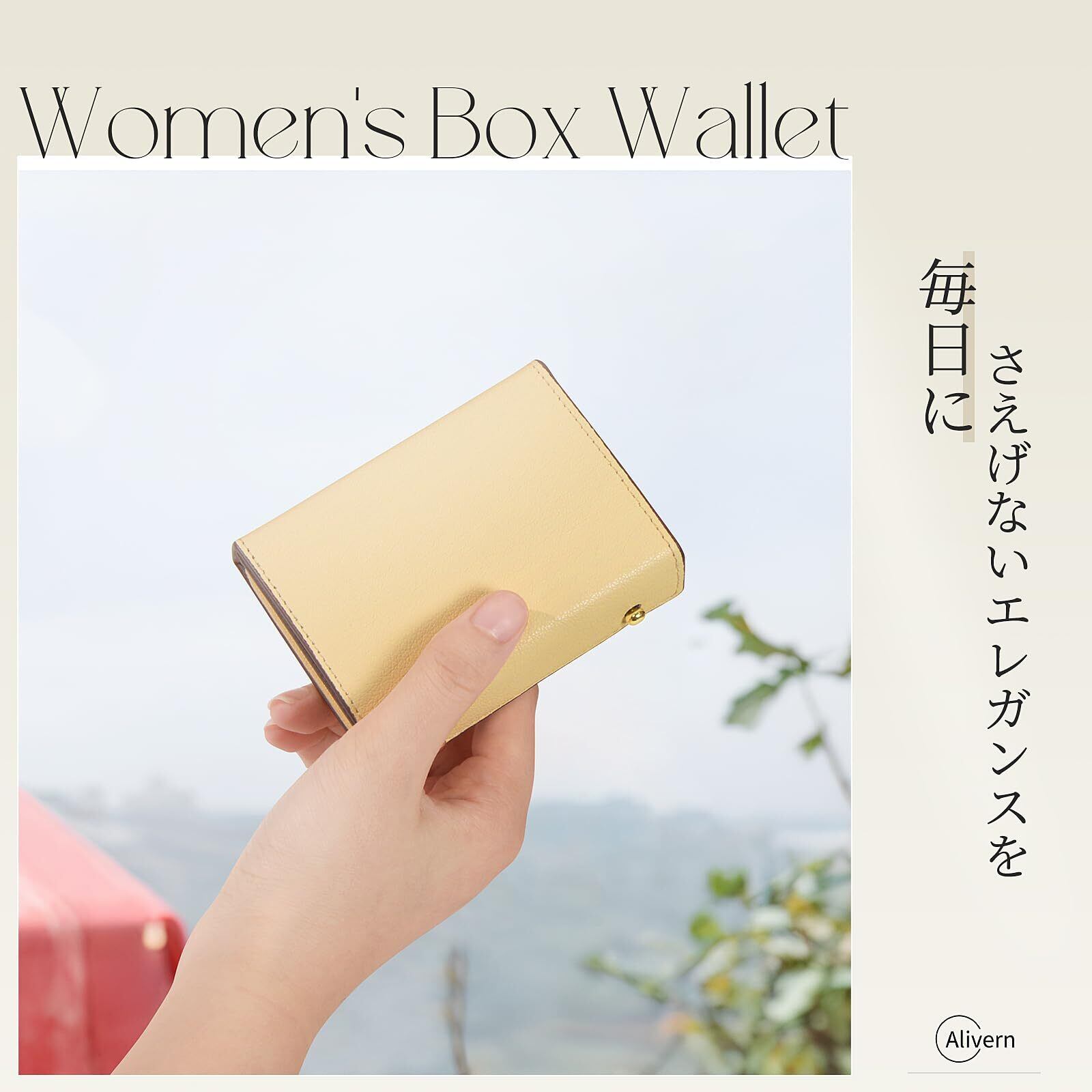 [Alivern] 財布 レディース 2つ折り コンパクト 本革 じゃばら ボックス型小銭入れ カード入れ多い 小さい ミニ財布 大容量 箱状 左利き 右利き (イエロー)