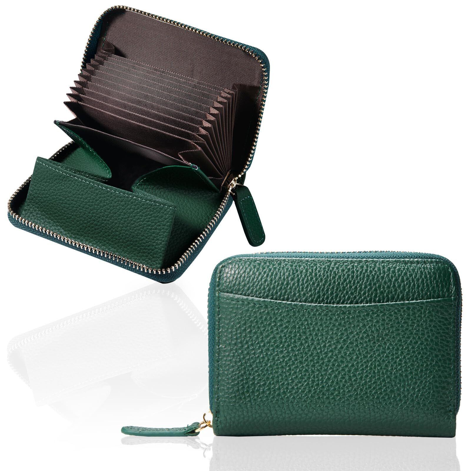 【数量限定】[NEESE] お札が折れない ミニ財布 本革 二つ折り財布 定期入れ 全8色 コンパクト レディース メンズ じゃばら 小さい財布 小銭入れ カードケース 一粒万倍日 ギフト(新仕様・外ポケット付き, ダークグリーン)