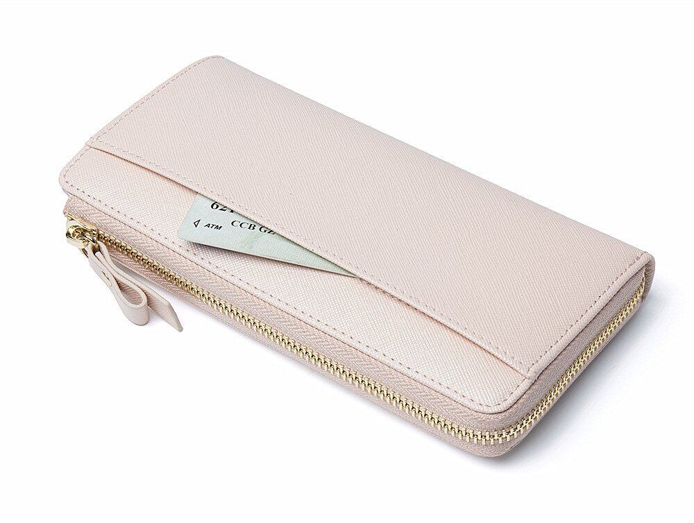 【特価セール】[フェアーフェアリー] 財布 レディース シンプルリボン L字ファスナー 長財布 本牛革 エレガント レザー 大容量 可愛い 160724 (ピンクベージュ)