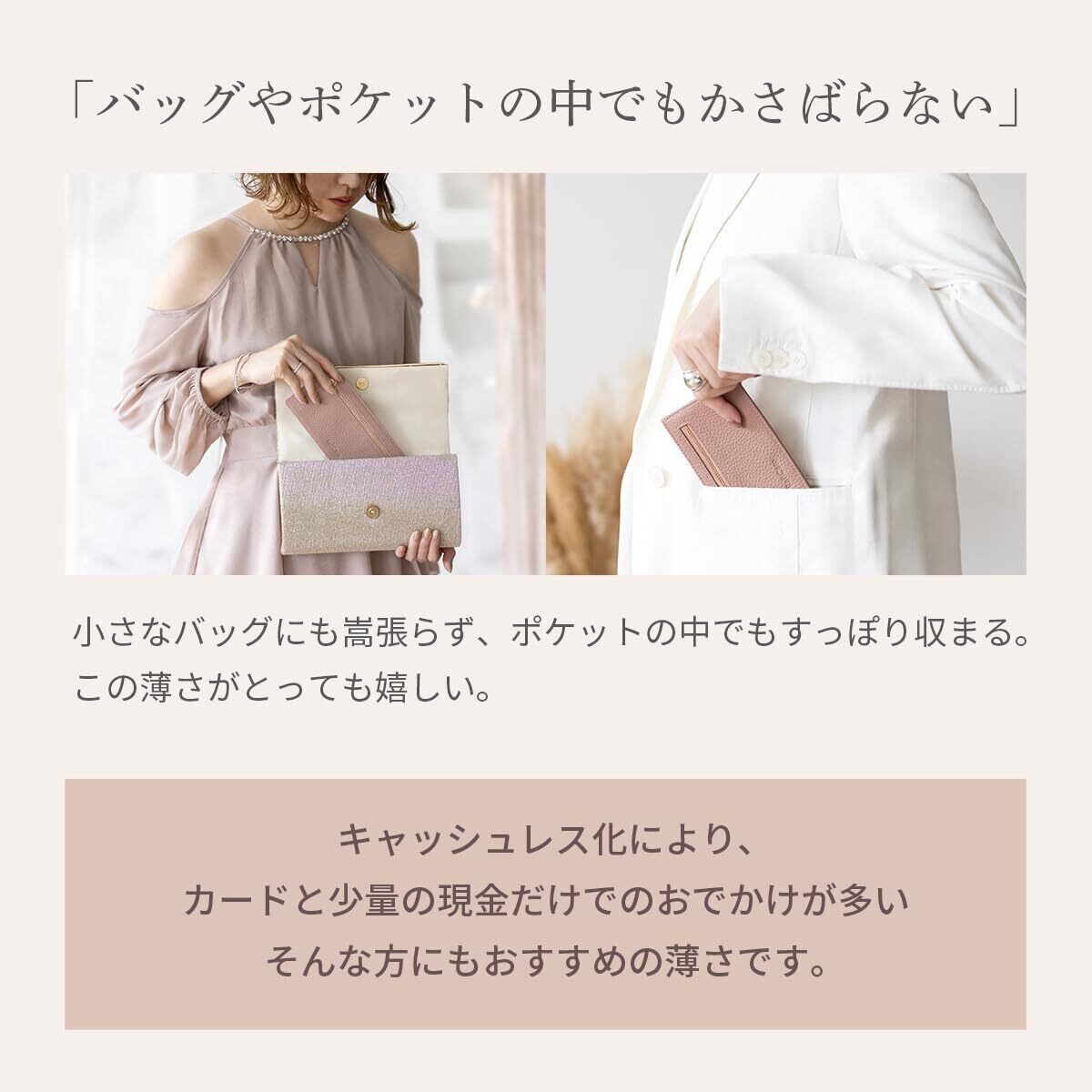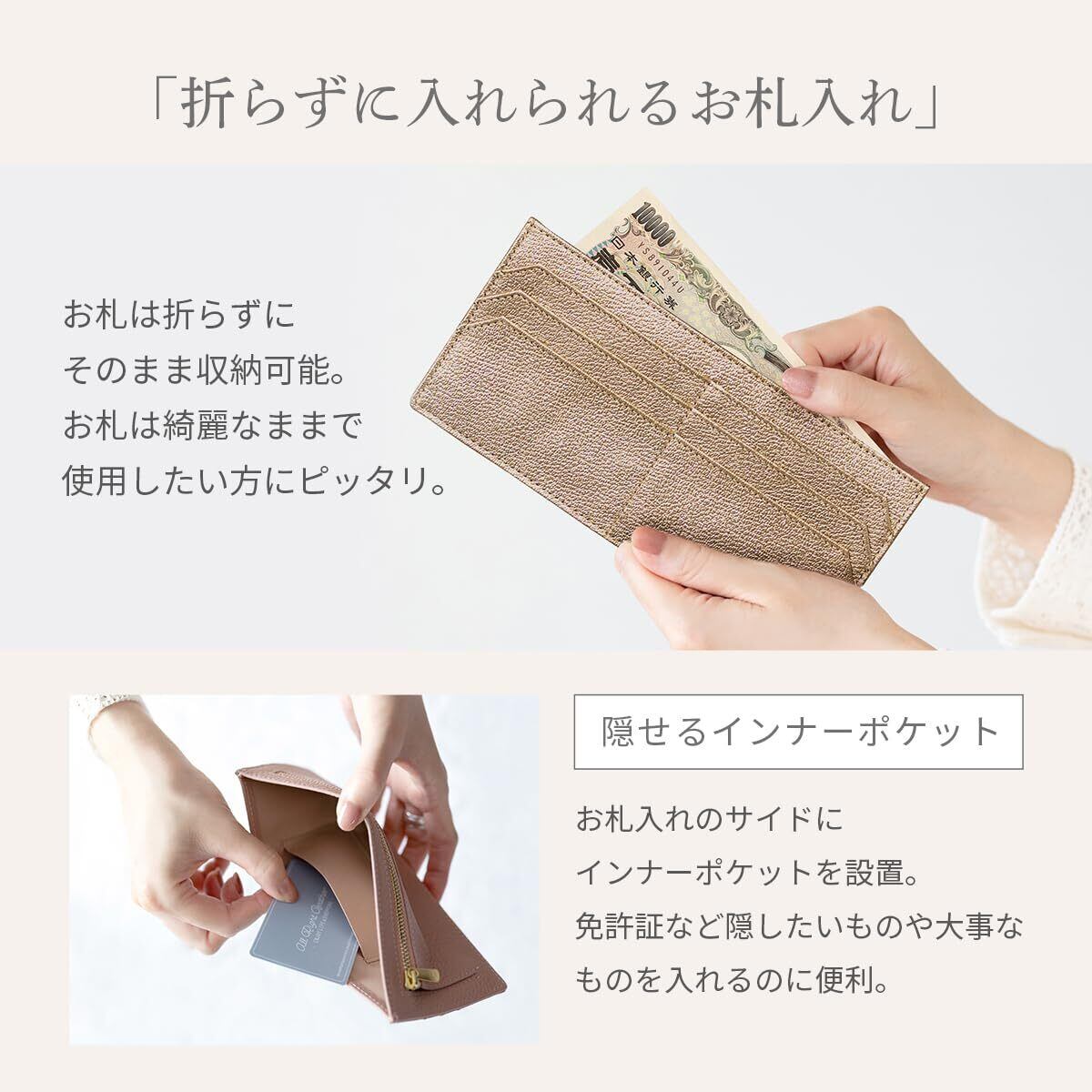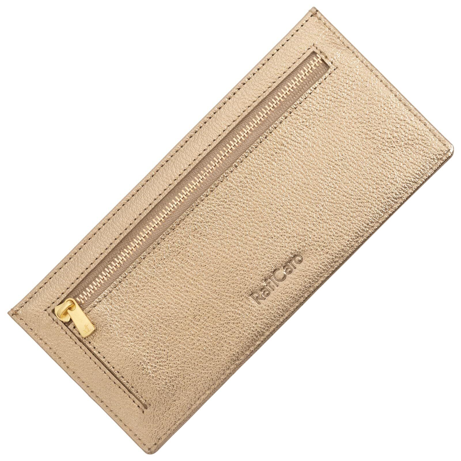 [RafiCaro] 財布 薄型 レディース お札入れ 本革 長財布 軽い 軽量 お札を折らない YKKファスナー マチ付き 小銭入れあり フラグメントケース スマートウォレット シャンパンゴールド
