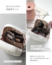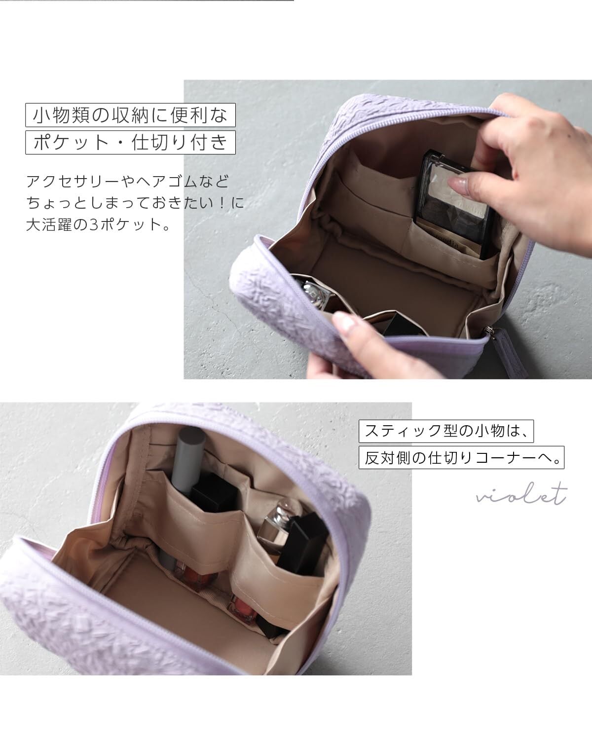 【便利な内ポケットが8つ】必要なコスメがすべて入るこだわりのポーチです。外側にも大きいポケットを一つご用意しております。メイク道具だけでなく、お薬などの小物の収納も◎整理がしやすいポーチを作ったので忙しい朝もこのポーチ一つで解決できます。
