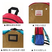 大人気リュックにSサイズが加わり、3サイズ展開にリニューアルキャラ物じゃなくて、シンプル、かつオシャレなリュック!!軽くて丈夫なナイロン100%。お子さまにも開閉しやすいダブルファスナー。ショルダーはパット入りでフカフカ。胸にはしっかりチェストベルト。フロントポケット1つ。さらにサイドにもポケットが2つ。ペットボトルもすっぽり入ります。背中側についているネームホルダーで、お子様の名前も晒されずに安心。保育園・幼稚園・小学校の遠足やアウトドアに。クレイジーカラーがとってもキュート。