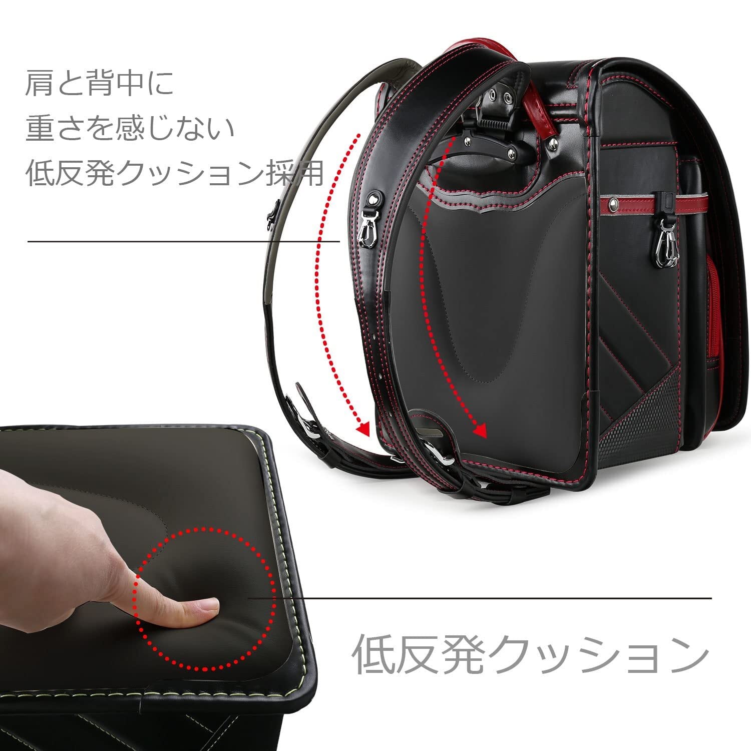3.【技術と機能】低弾力の背もたれと極太のショルダーベルトは。 荷物をたくさん入れても重くならず。 体に最適な姿勢をサポートするように設計されています。