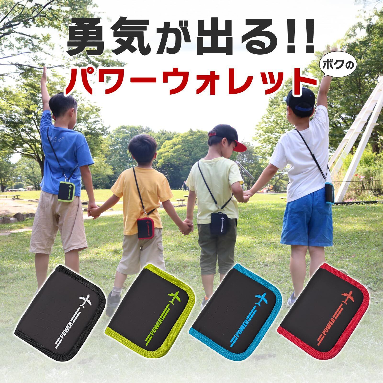 Lunaporto キッズ 財布 子ども ストラップ付 小学生 男の子 首掛け ひも付き 小銭入れ 二つ折り コインケース カード入れ おつかい (ブラック&グリーン)