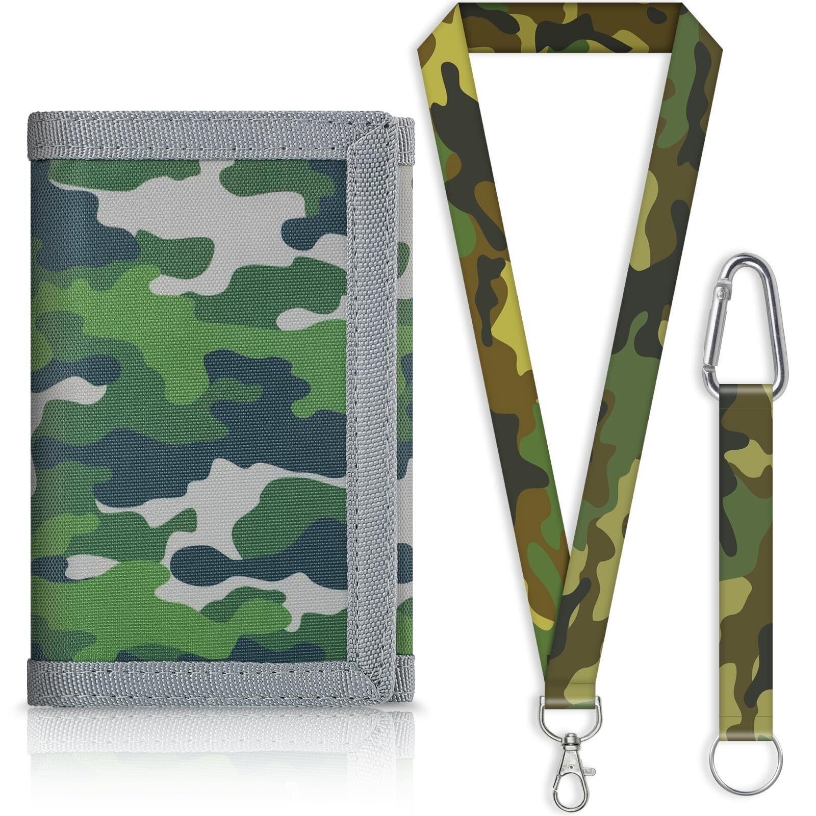 [ZHOMA] キッズ 財布 三つ折り 紐付き メンズ 男の子 女の子 子供用 小銭入れ ファスナー 首掛け ストラップ付き 薄い コンパクト 人気 おしゃれな 迷彩 恐竜 かわいい さいふ 中学生 小学生 女子 男子 高校生 ギフト スポーツ マジックテープ 便利 財布 (緑の迷彩)