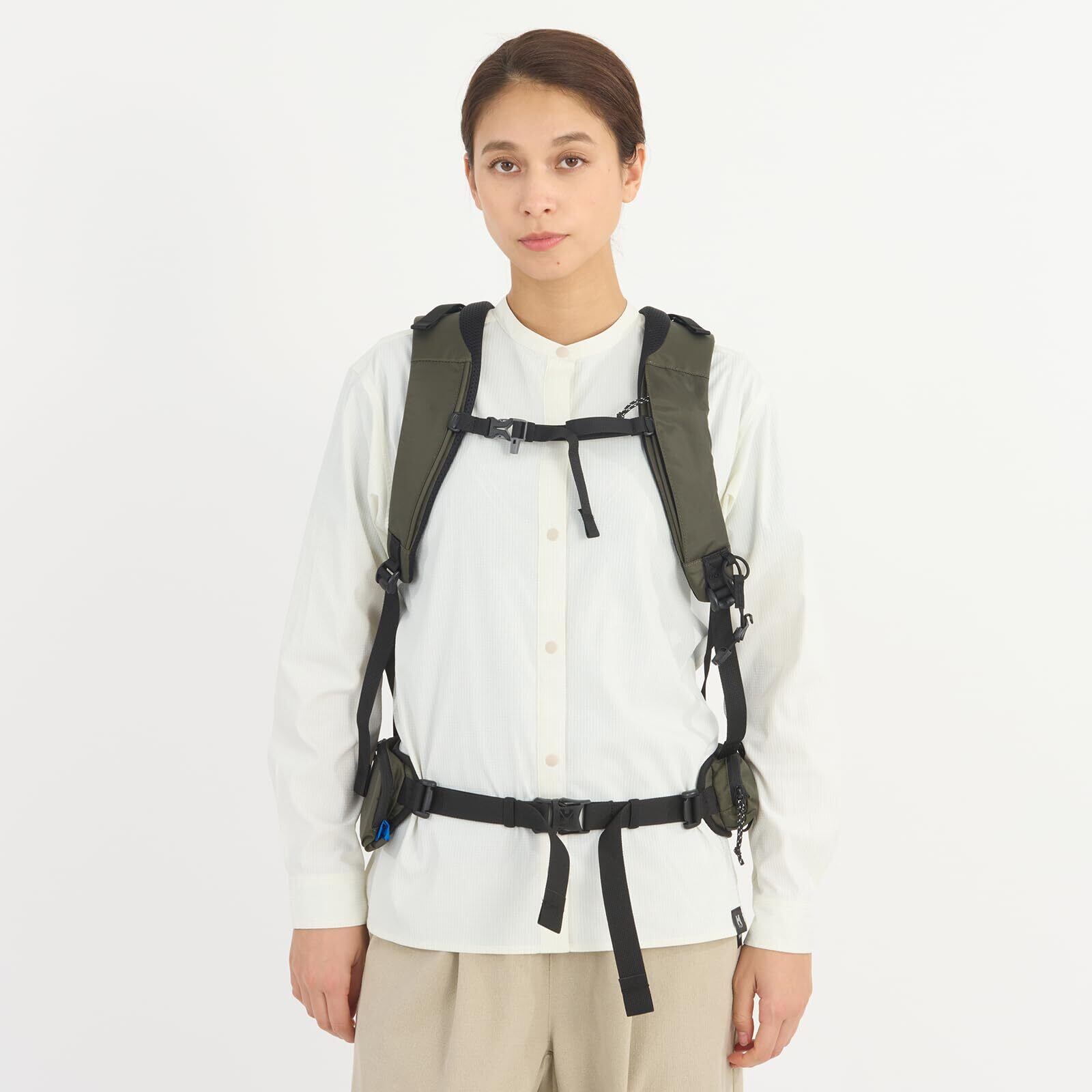 街歩きからアドベンチャーまでシームレスに楽しむアクティブな旅人のためにデザインされた多用途型リュックサック。長時間背負っても快適な背面システムはもちろん、スムーズなパッキングを可能にするロールトップ式で大きく開くメイン収納など、長旅を快適に過ごすための基本的な機能が備わっています。さらにこのメイン収納には直接アクセスできるフロントジッパーが設けられ、他にもフロント・サイド・ショルダー等の外側収納によって必要なアイテムを収納でき、素早い出し入れが可能です。すっきりとしたデザインは、シーンを選ばず快適な旅をサポートしてくれます。